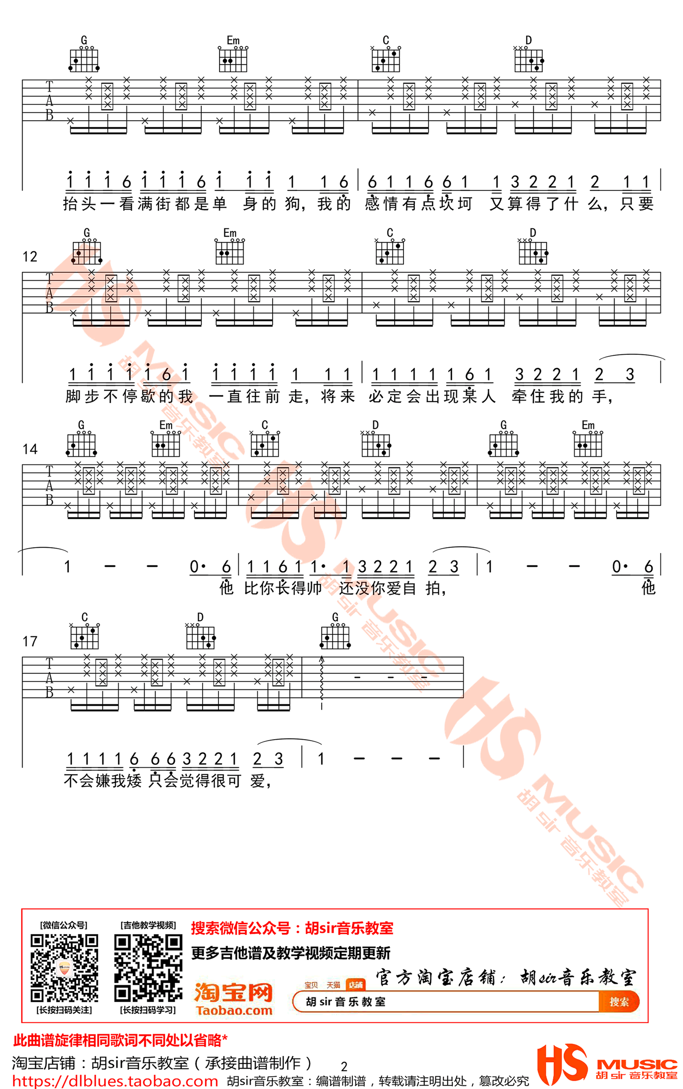 - 屌丝之歌六线谱 花粥《屌丝之歌》吉他谱 C调弹唱谱