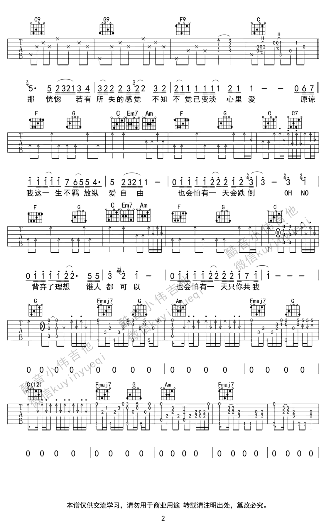 - 周杰伦《不爱我就拉倒》吉他谱 C调指法 高清六