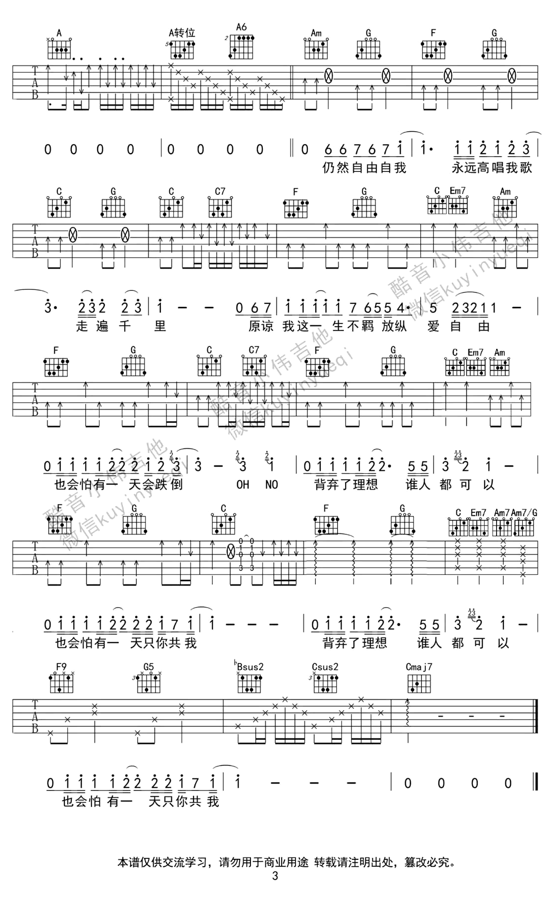 - 远走高飞吉他谱 金志文 原版六线谱 高清弹唱谱