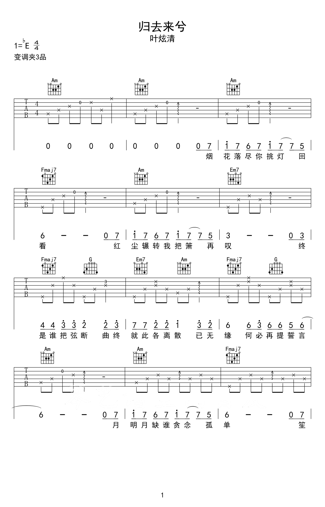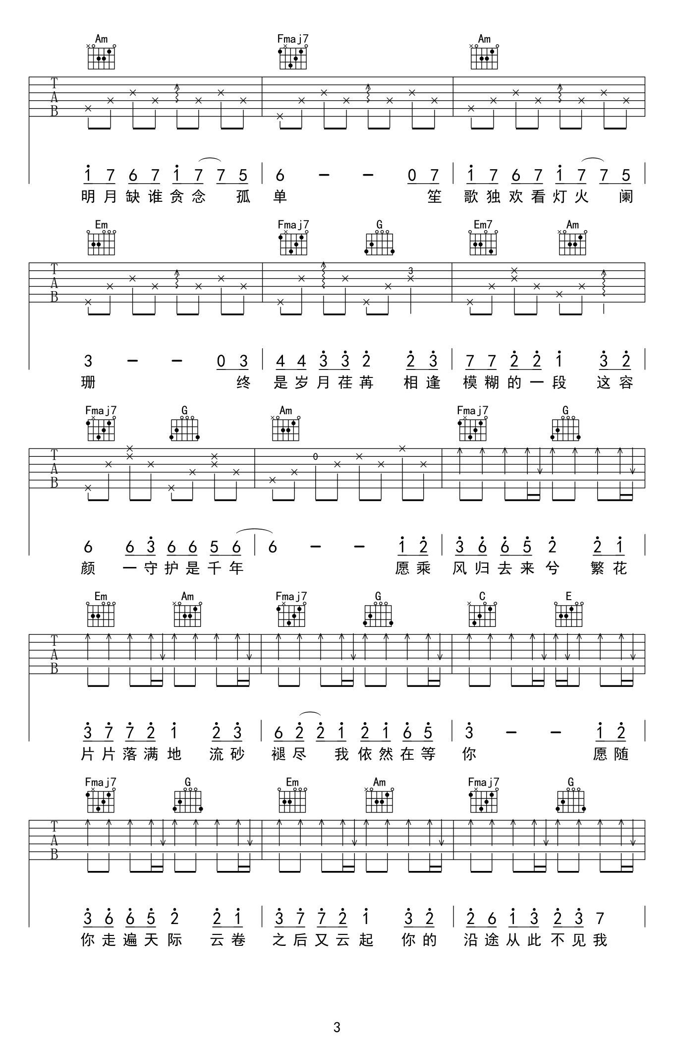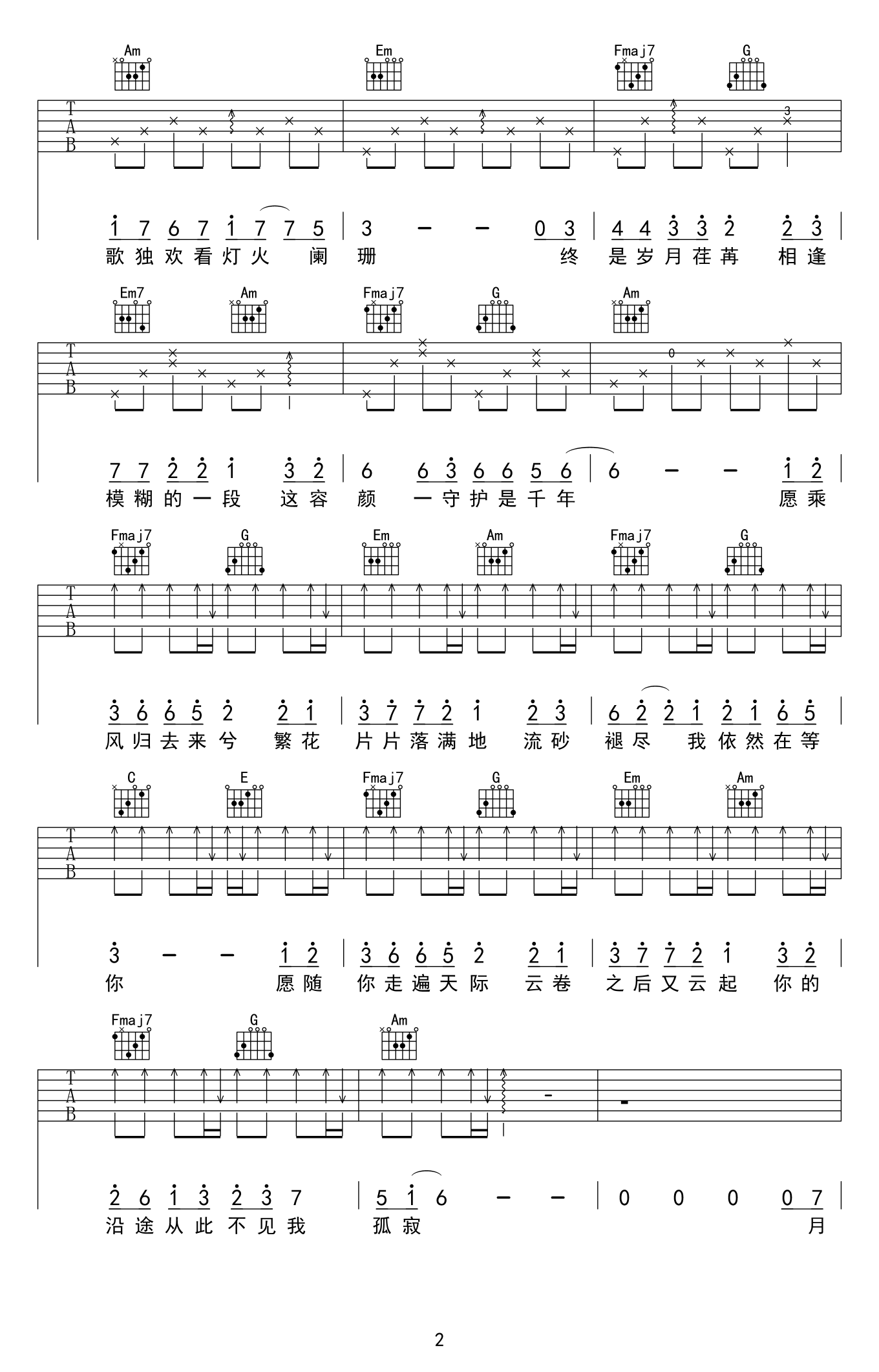 - Cannie《遥远的歌》吉他谱_六线谱_民谣歌曲弹唱