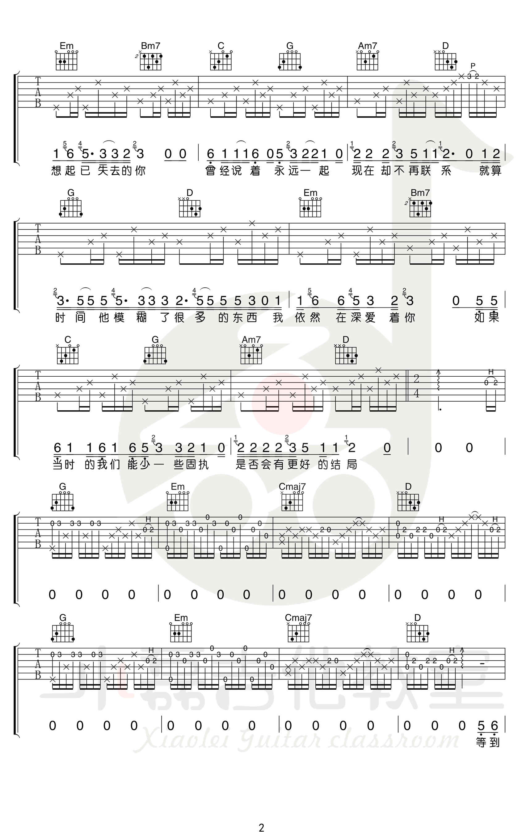 - 陈硕子《等你》吉他谱 C调六线谱 图片谱