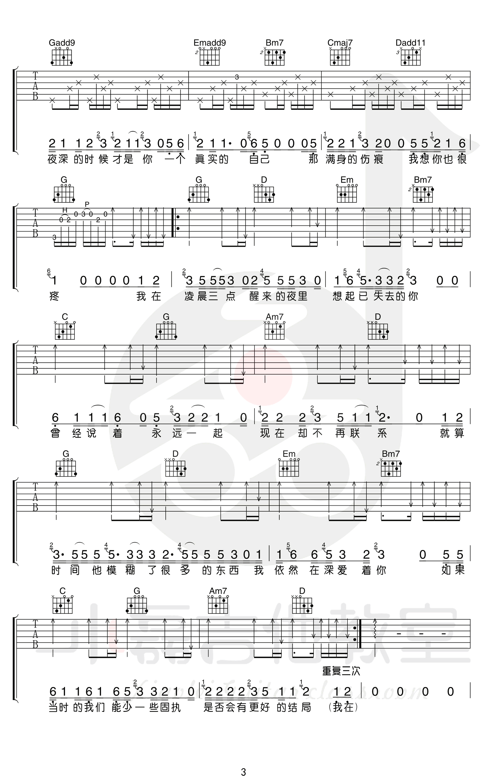 - 凌晨三点吉他谱 陈硕子 C调弹唱谱完整版 图片谱