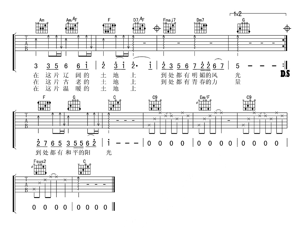 - 我的祖国吉他谱_郭兰英_C调_弹唱六线谱