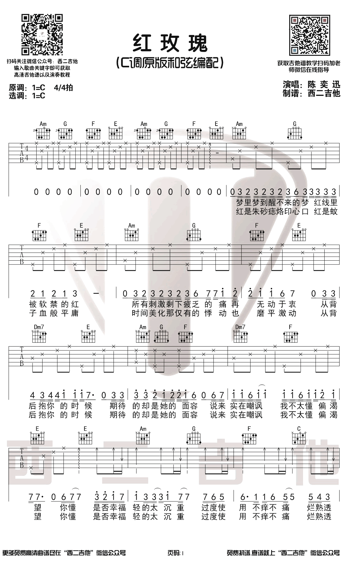 - 红玫瑰吉他谱_陈奕迅_C调原版_吉他演示视频