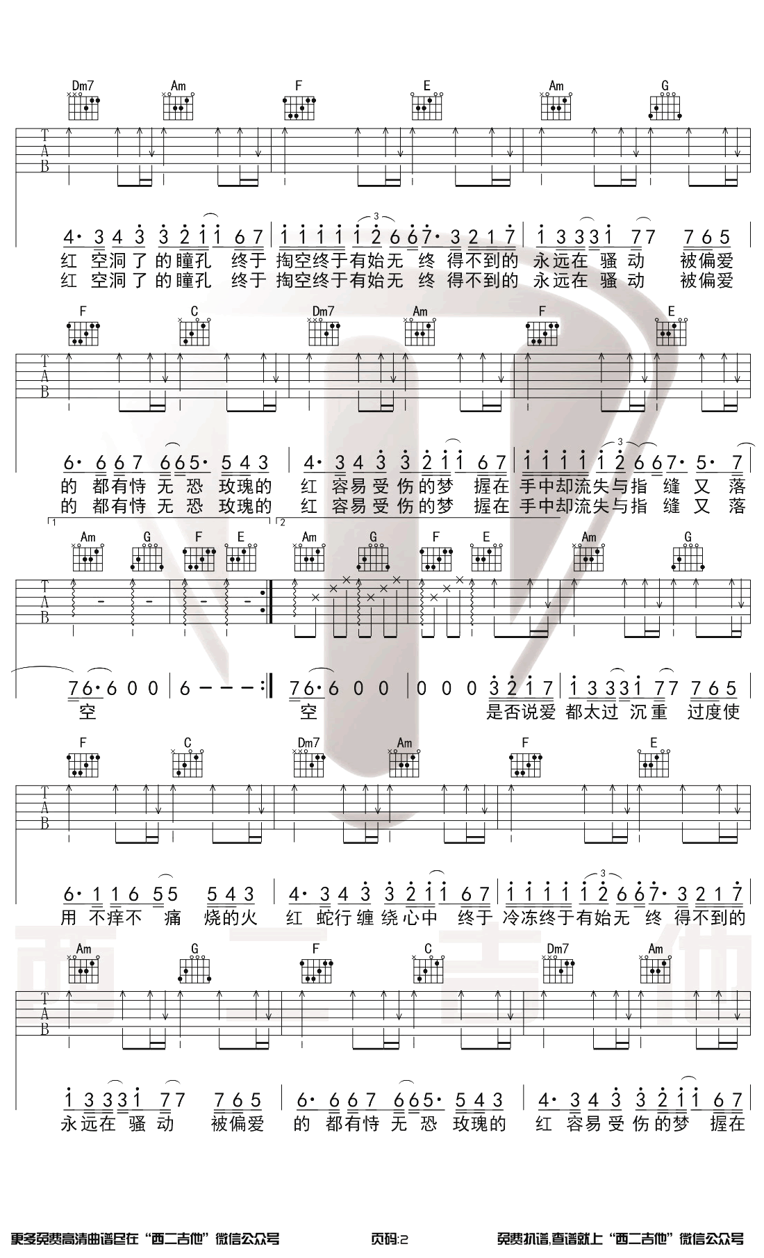- 红玫瑰吉他谱 陈奕迅 C调扫弦版 高清六线谱