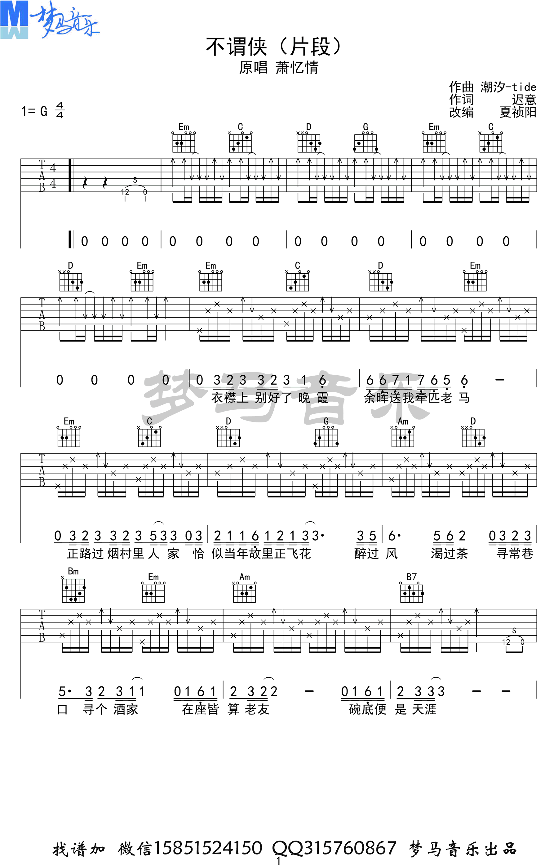 - 不谓侠吉他谱_萧忆情_G调原版_弹唱演示视频