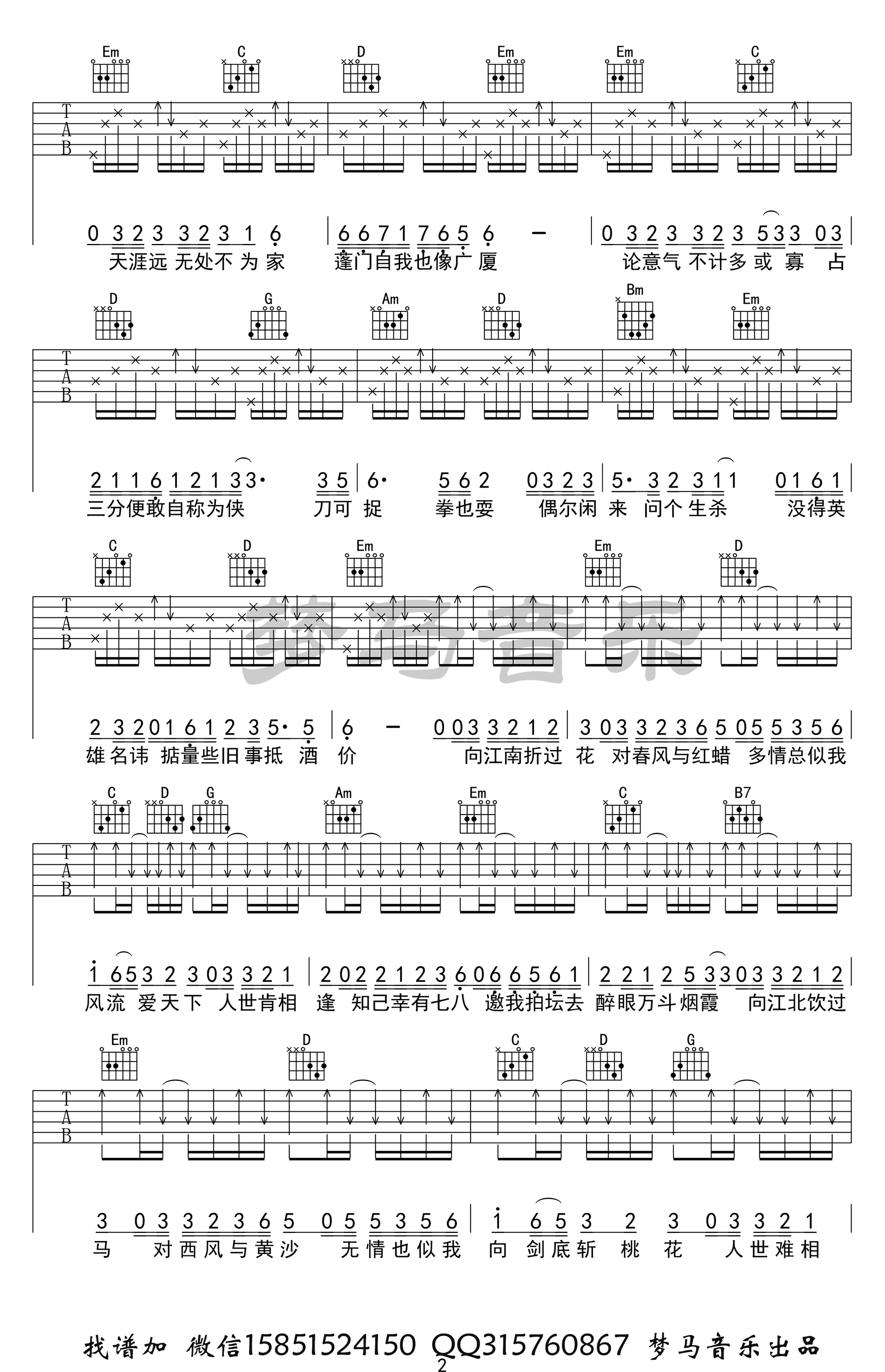 - 不谓侠吉他谱_萧忆情_G调六线谱_弹唱演示视频