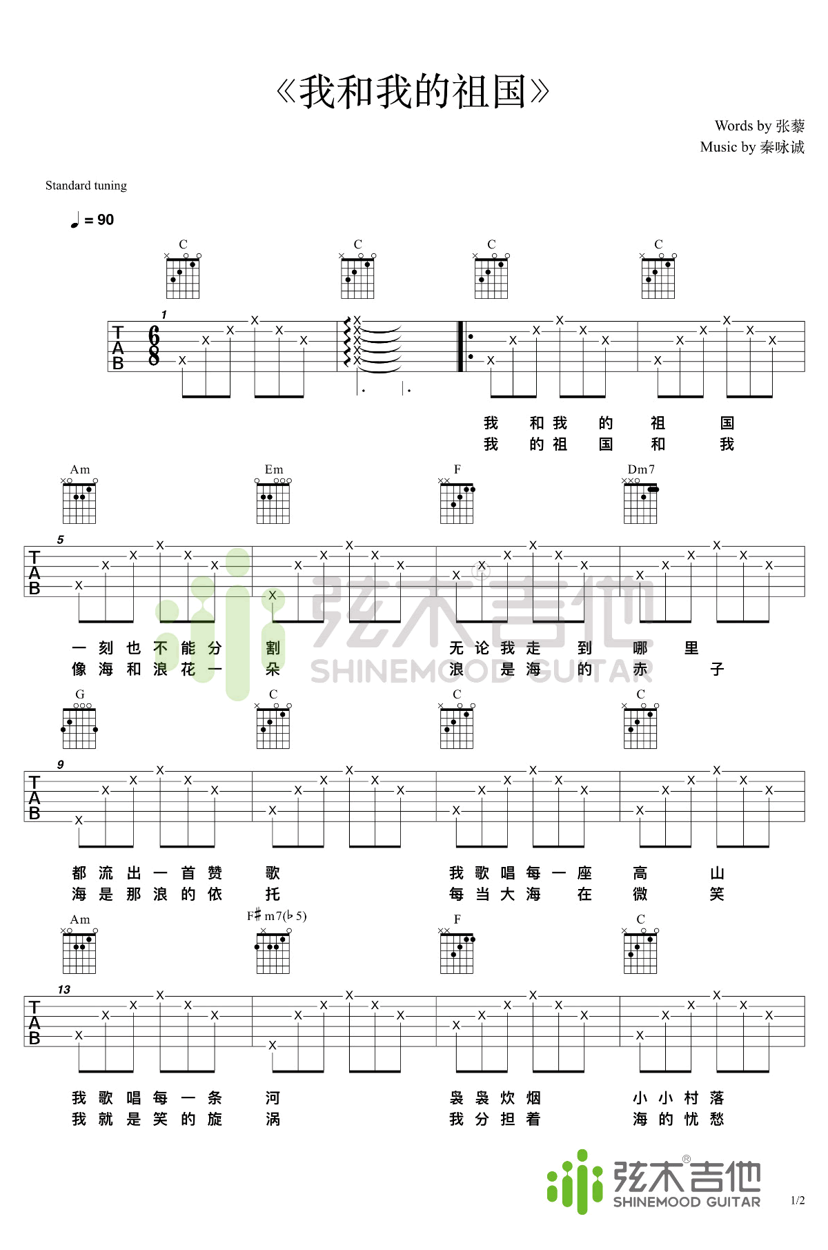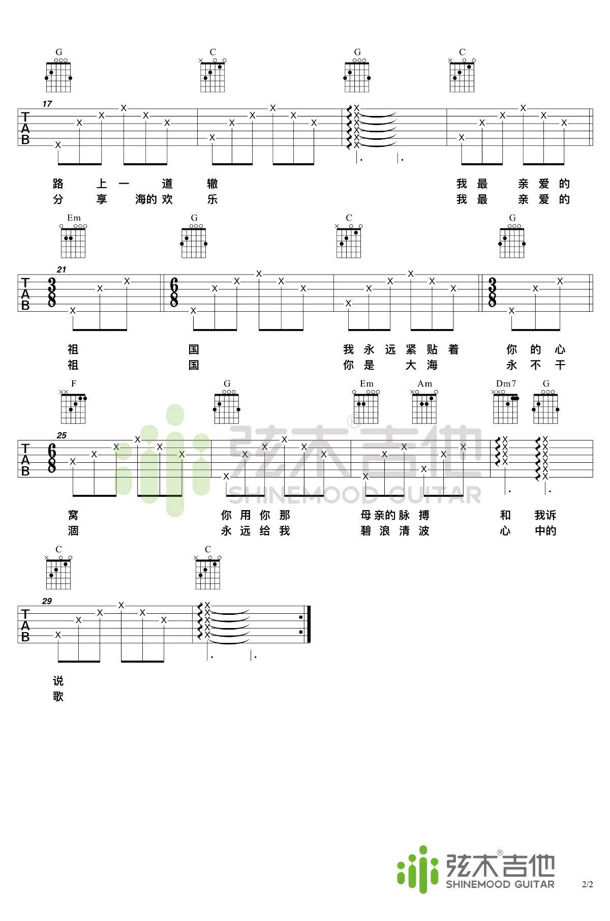 - 我和我的祖国吉他谱_C调六线谱_弹唱演示视频