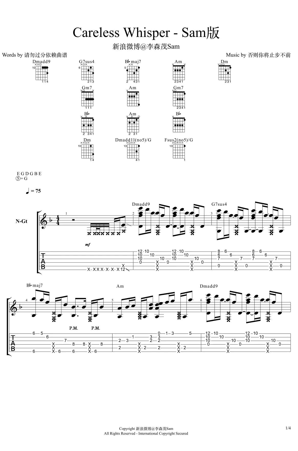 - Careless Whisper指弹谱_李森茂(Sam)_无心快语指弹演示视频