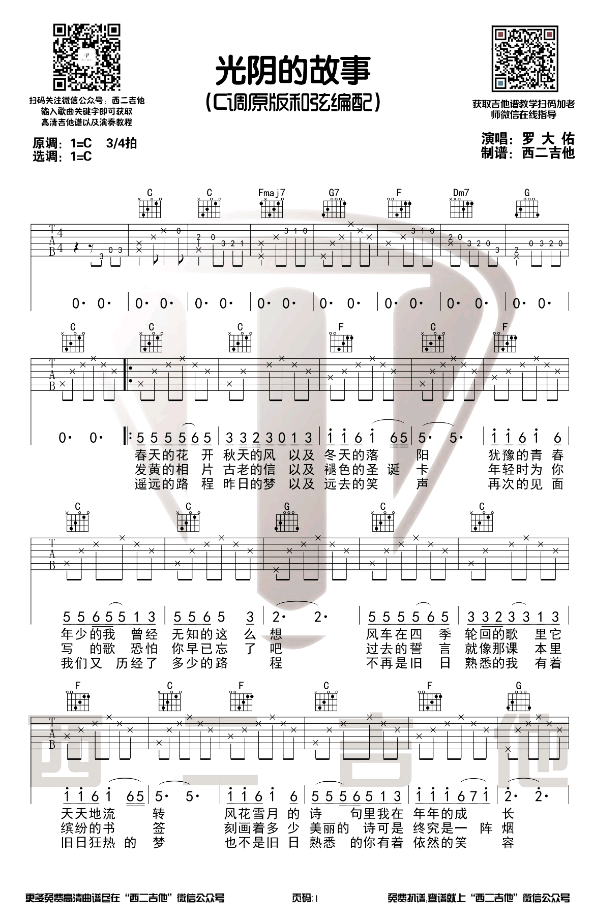 - 光阴的故事吉他谱_罗大佑_C调原版弹唱谱_演示视频
