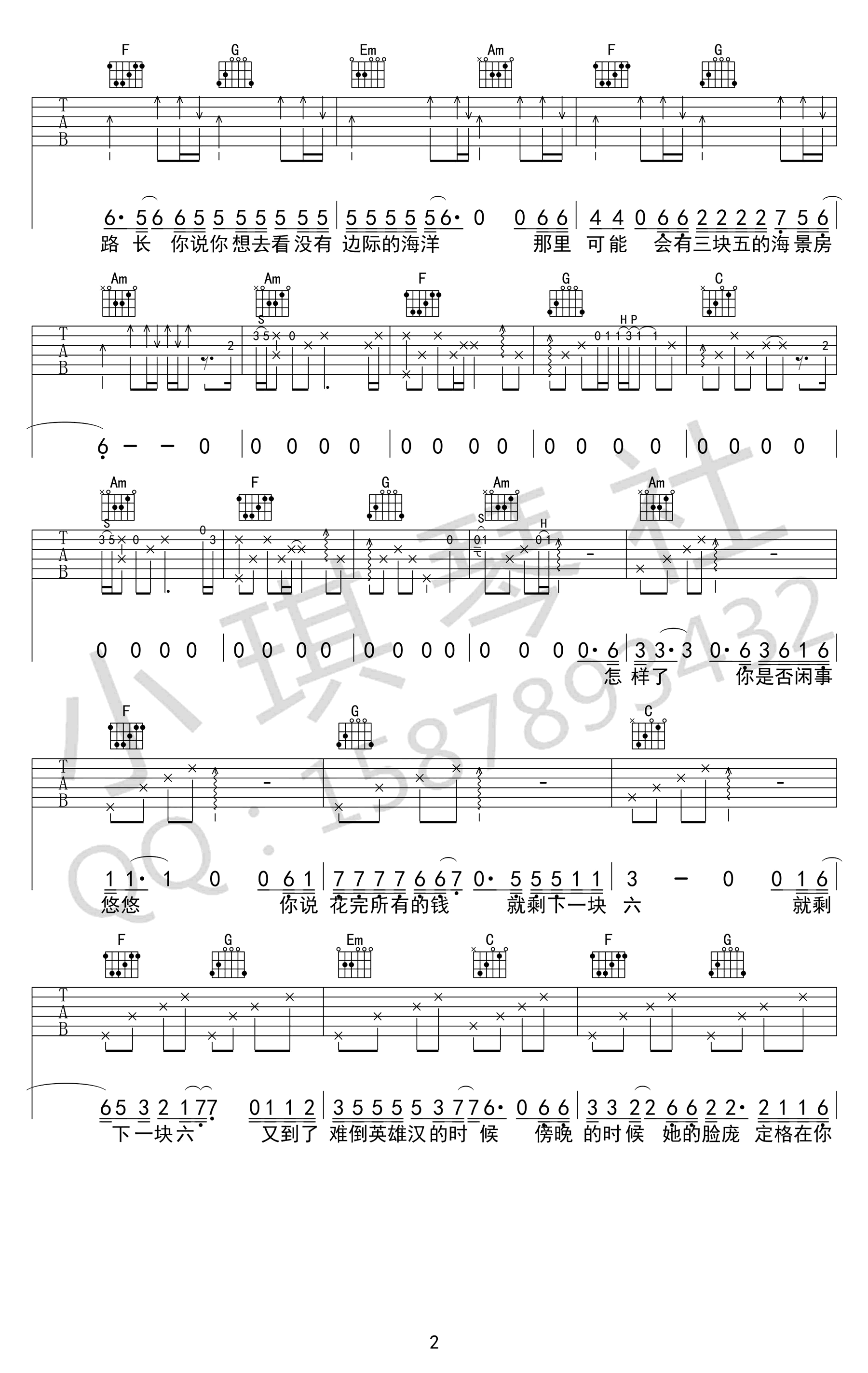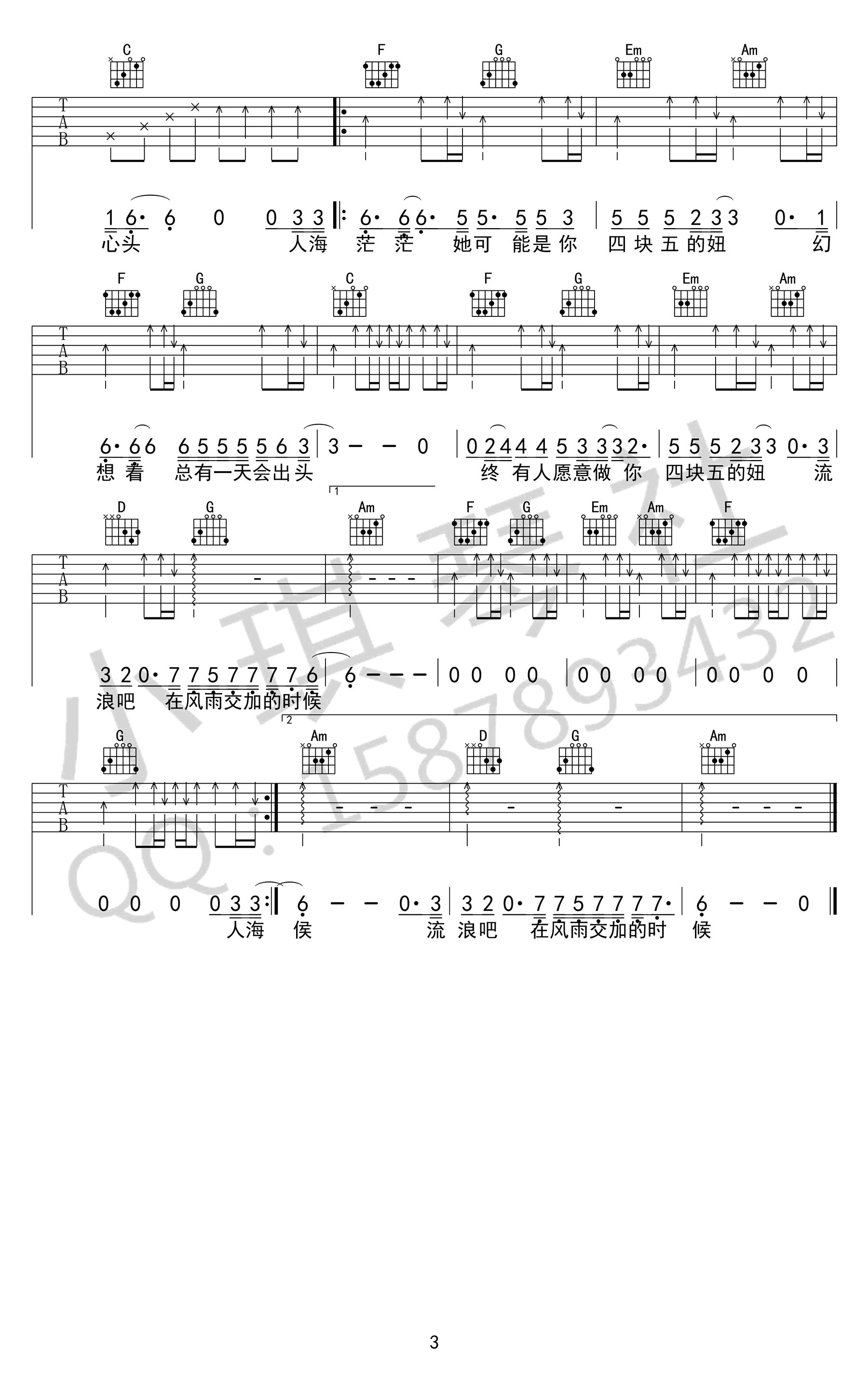 - 四块五吉他谱_隔壁老樊_C调六线谱_高清图片谱