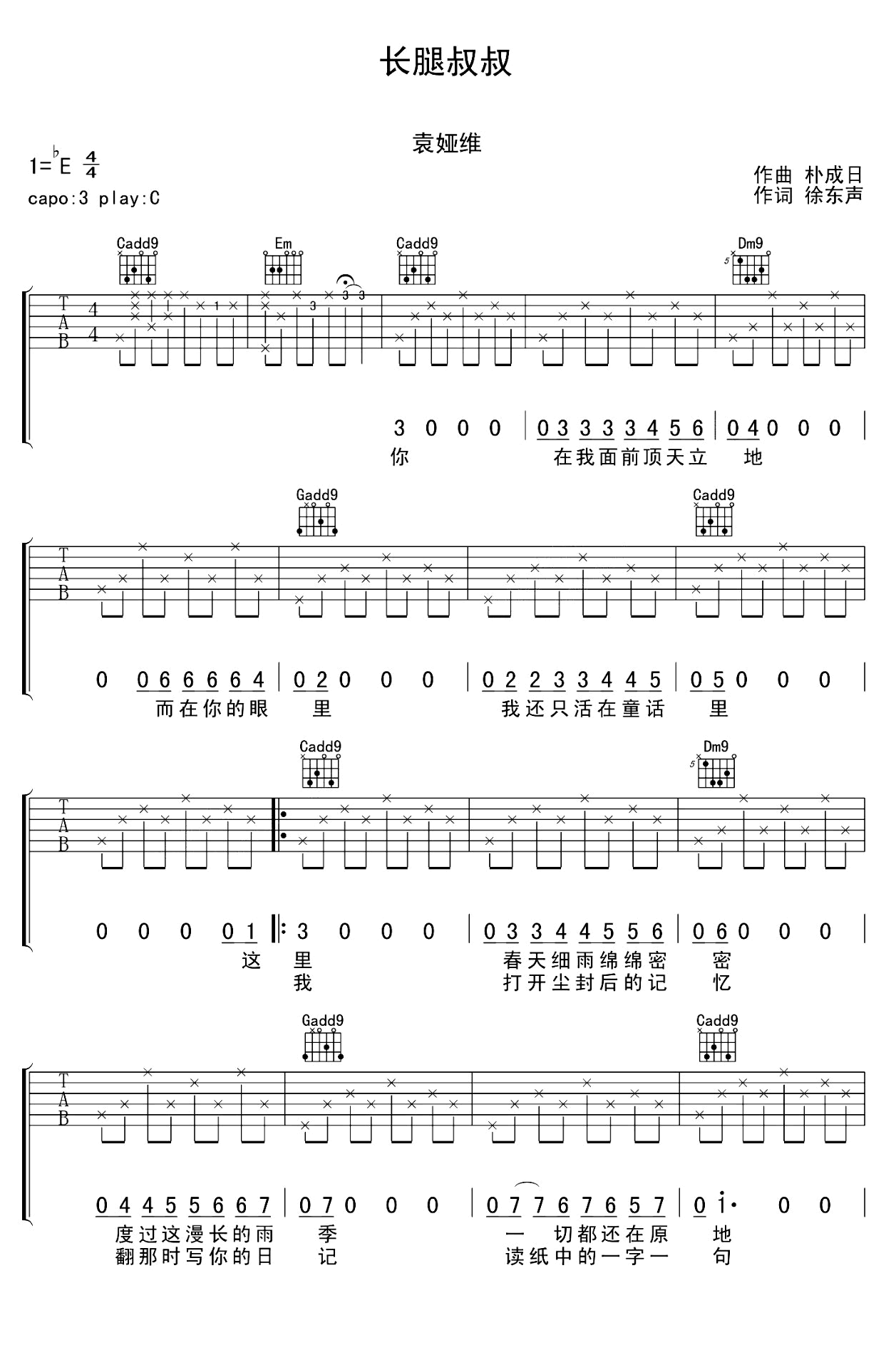 - 长腿叔叔吉他谱_袁娅维_C调弹唱谱_《老师晚上好》主题曲