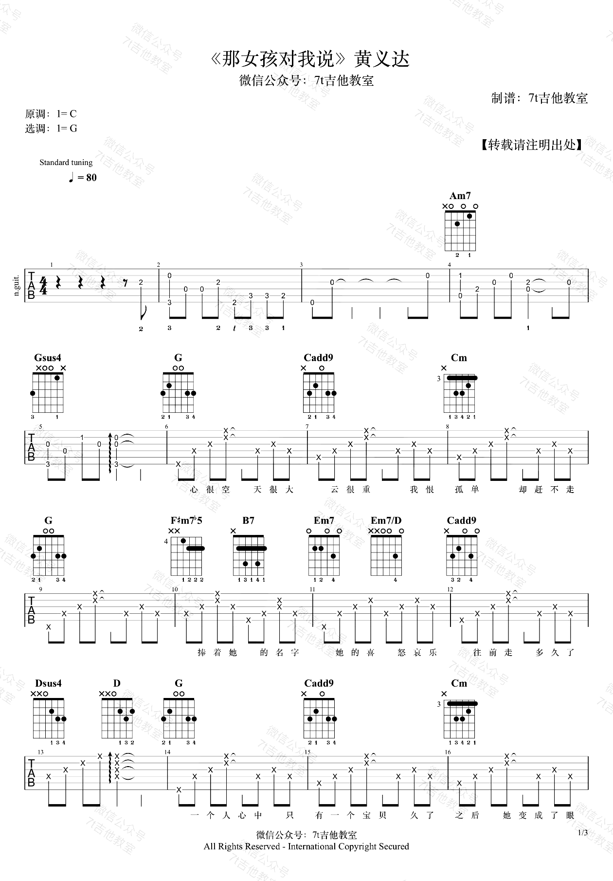 - 那女孩对我说吉他谱_黄义达_G调_弹唱演示视频