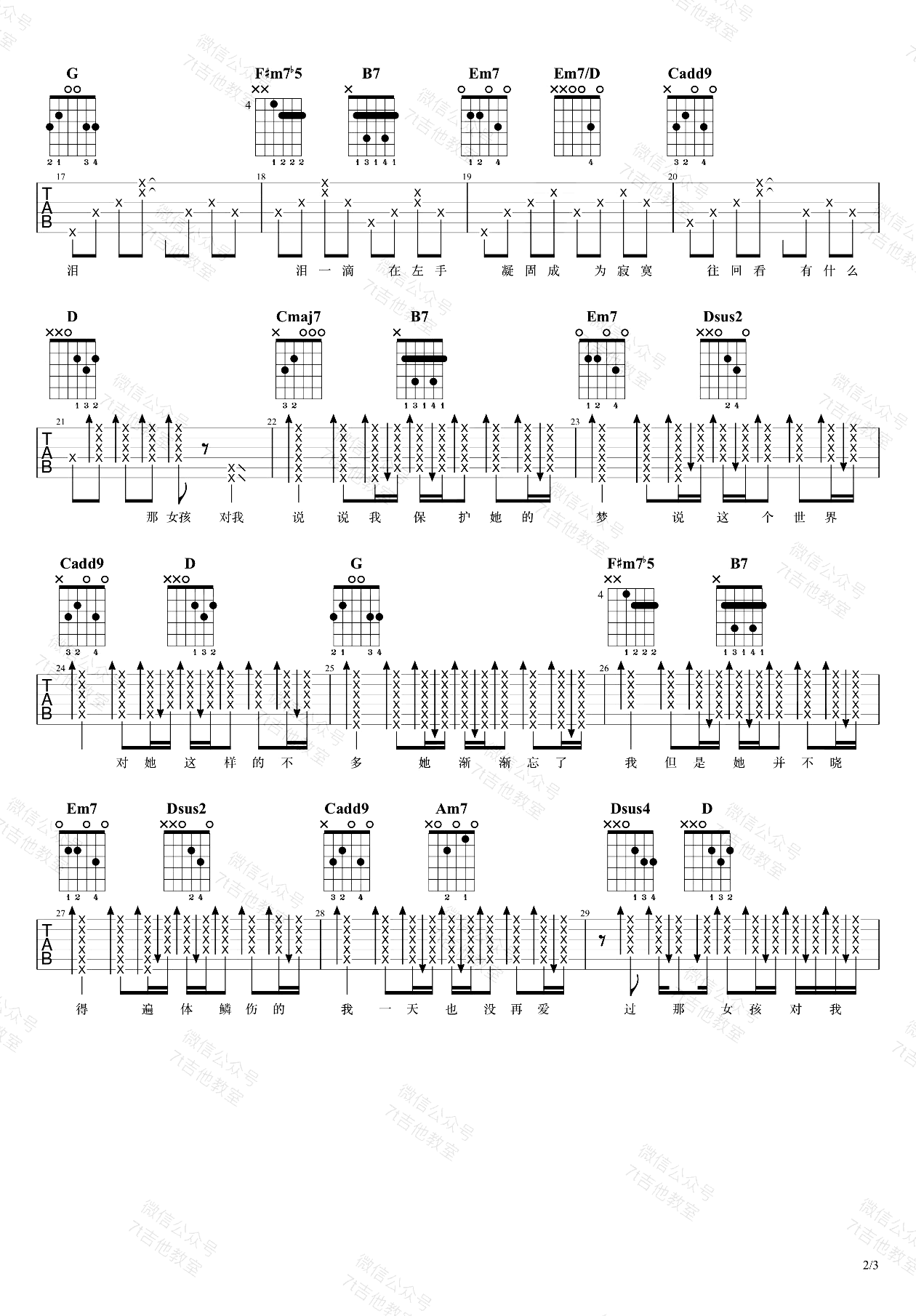 - 男孩别哭吉他谱_海龟先生《乐队的夏天》_G调六线谱