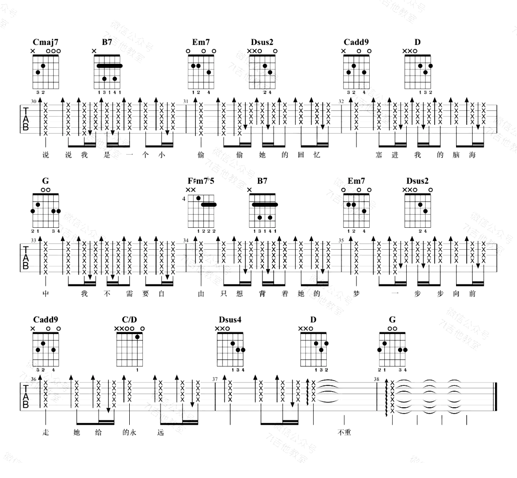 - 岁月神偷吉他谱_金玟岐_G调六线谱_弹唱演示视频