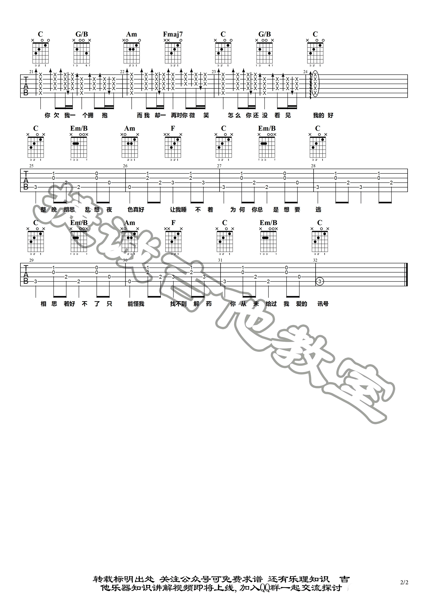 - 说好不哭吉他谱_周杰伦_G调_弹唱六线谱
