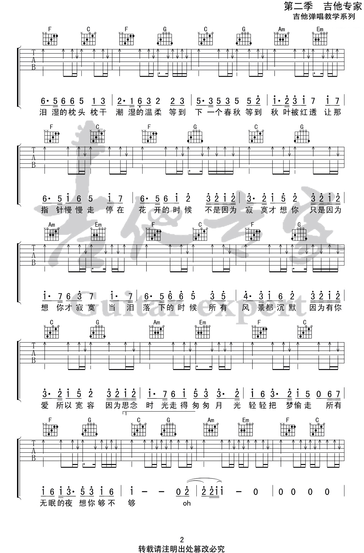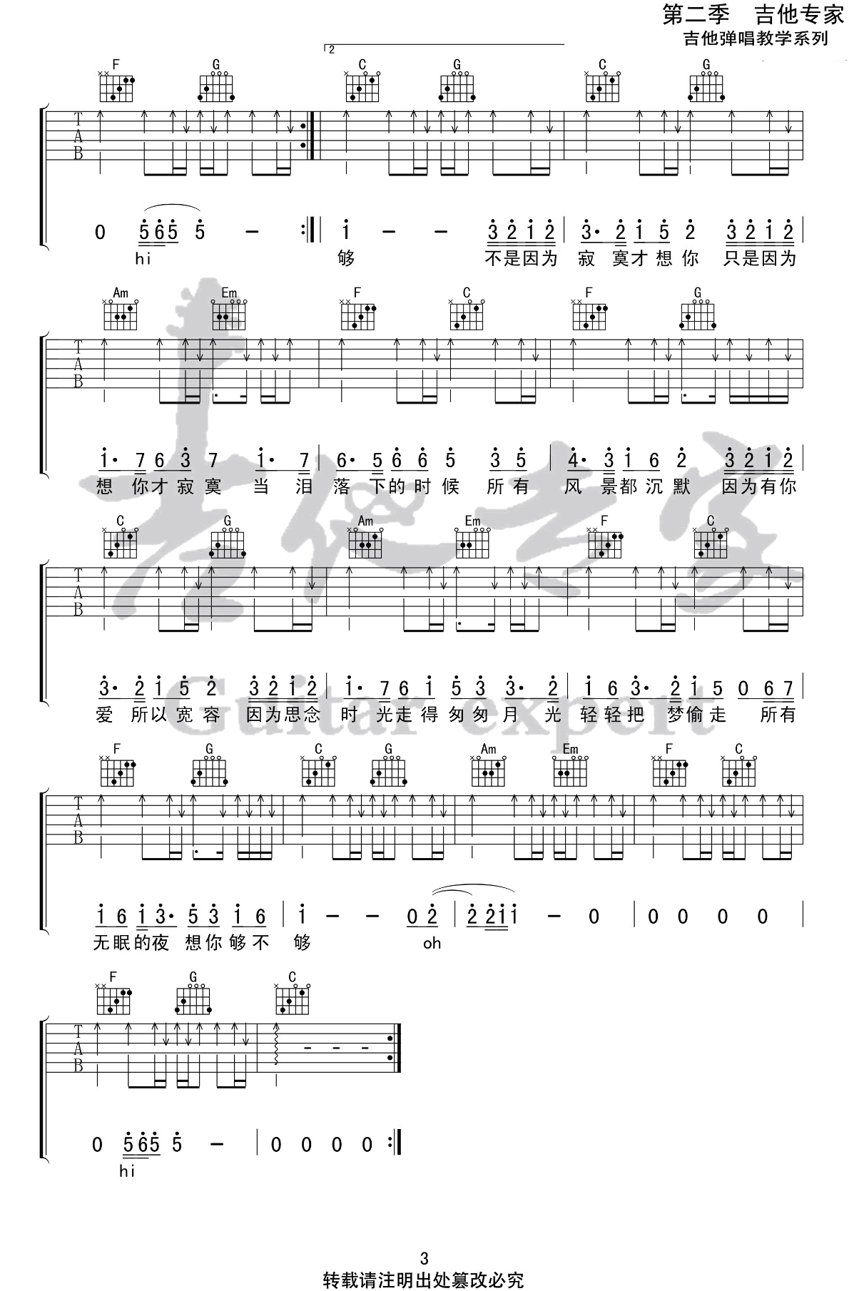 - 不是因为寂寞才想你吉他谱_TRY/王小帅_弹唱六线谱