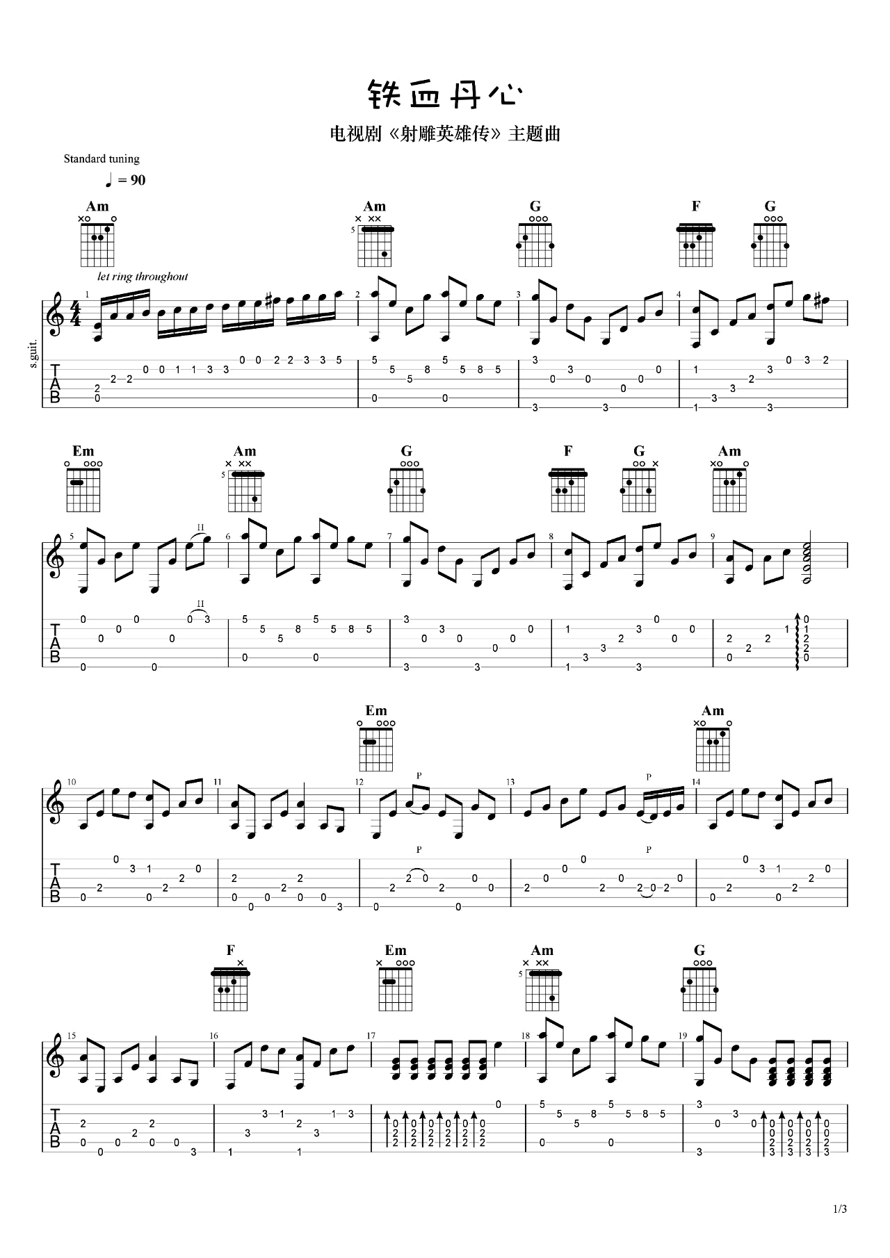 - 铁血丹心指弹谱_吉他独奏谱_指弹演示+教学视频