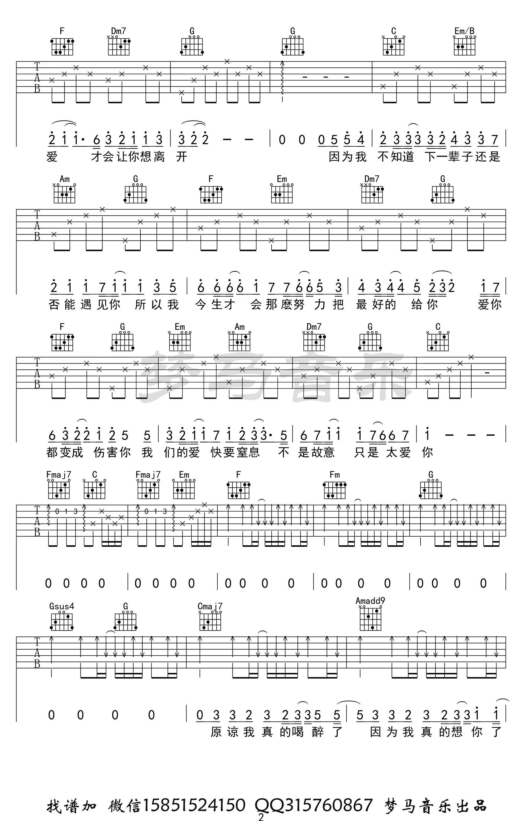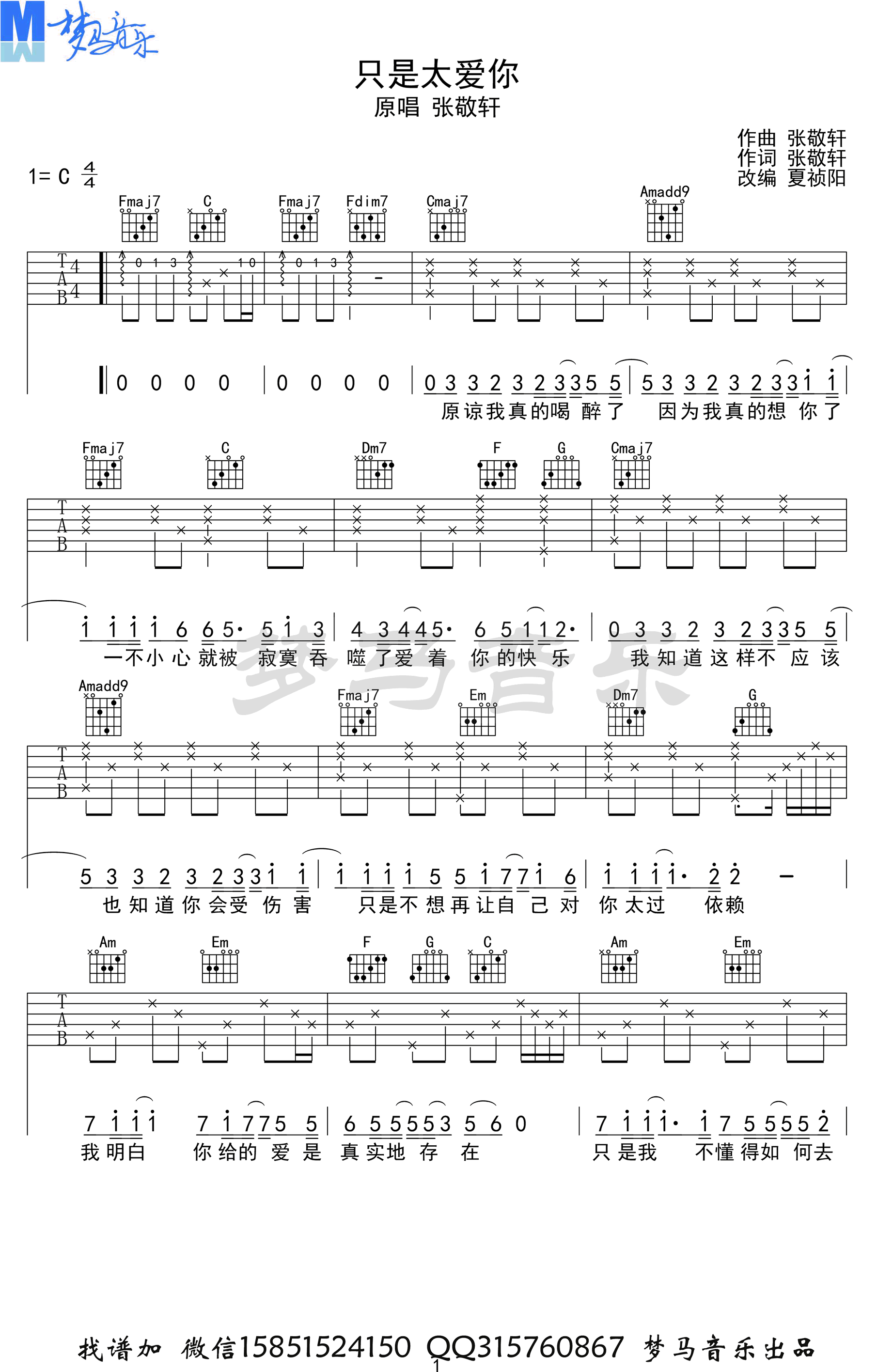- 只是太爱你吉他谱_张敬轩_C调六线谱_弹唱演示视频