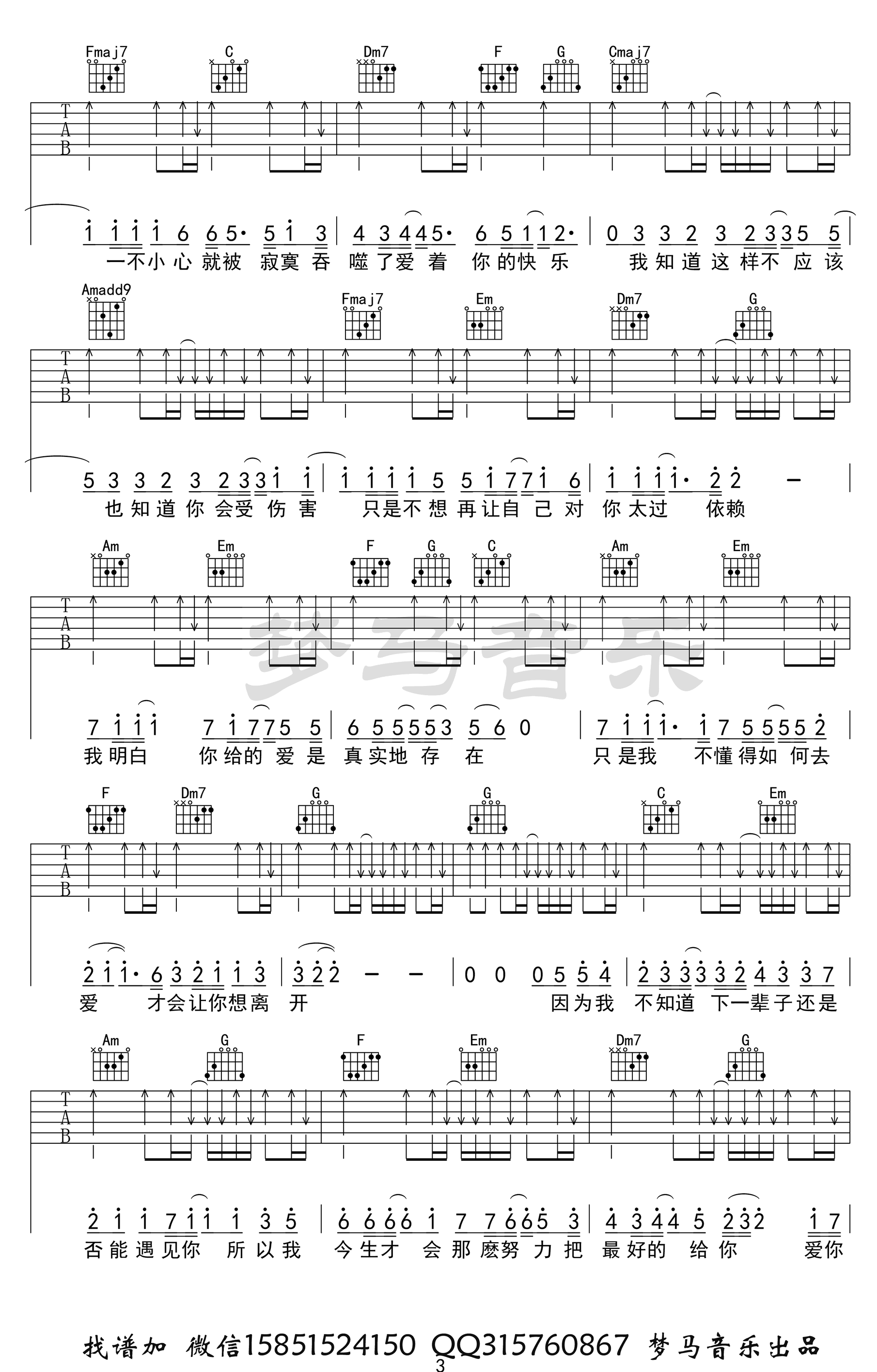 - 房间吉他谱_刘瑞琦_C调弹唱谱_图片谱高清版