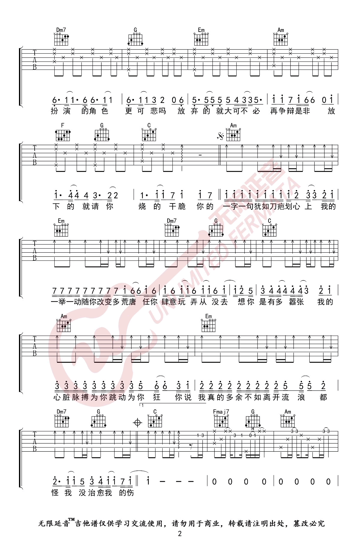 - EN《嚣张》吉他谱_C调指法_弹唱六线谱