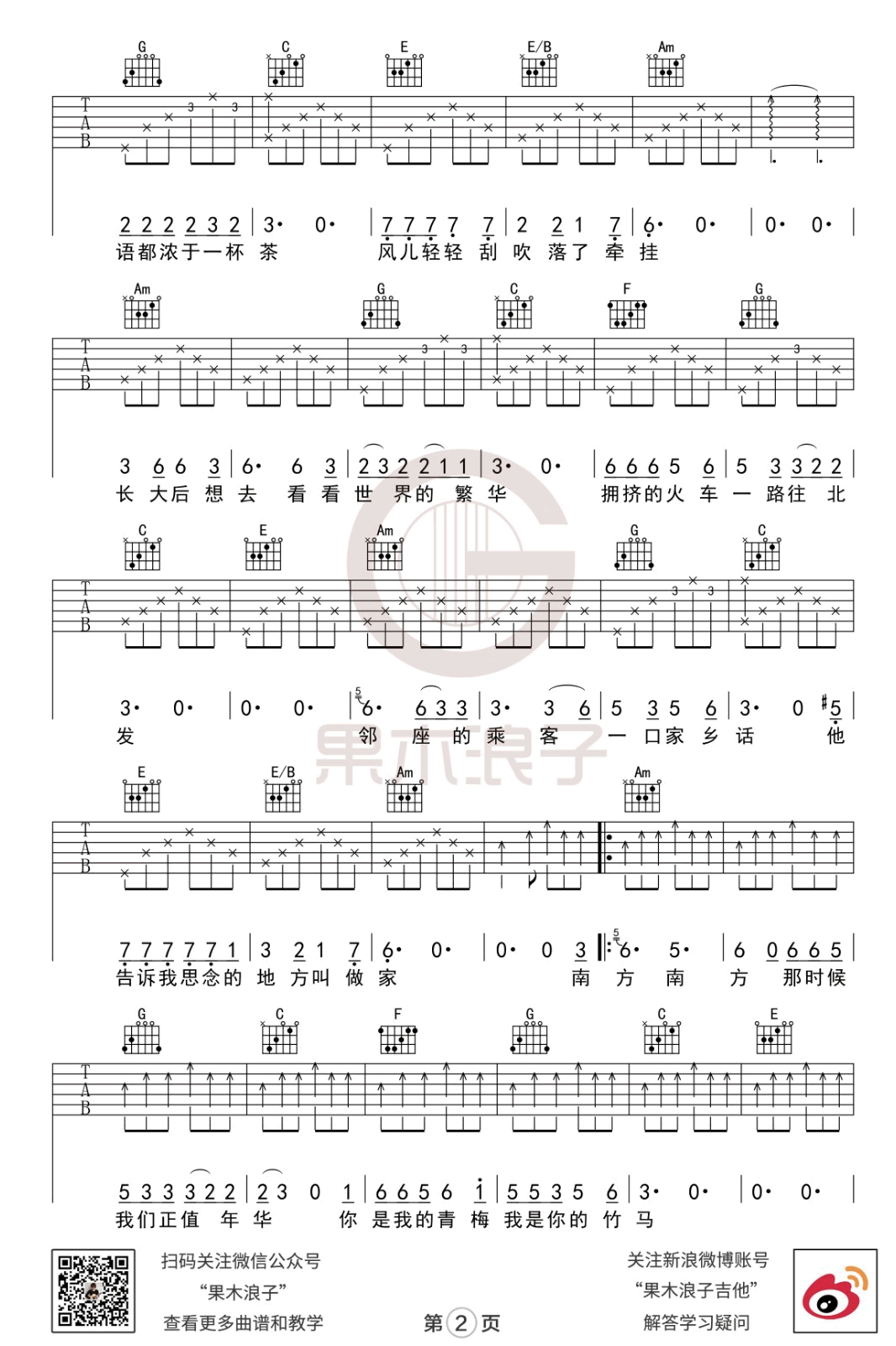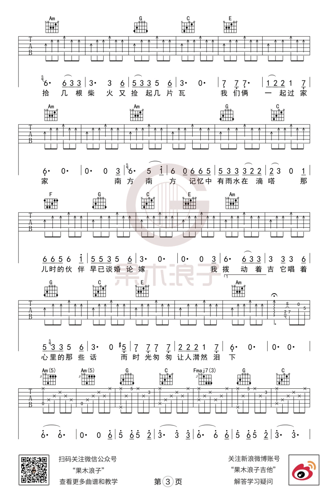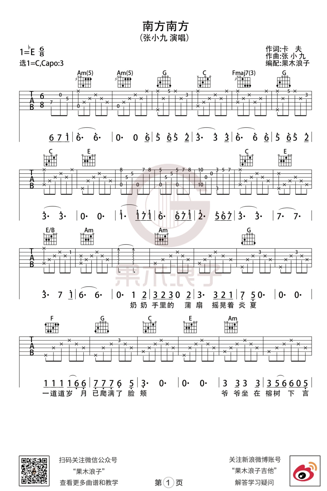 - 《南方南方》吉他谱_张小九_C调_弹唱六线谱