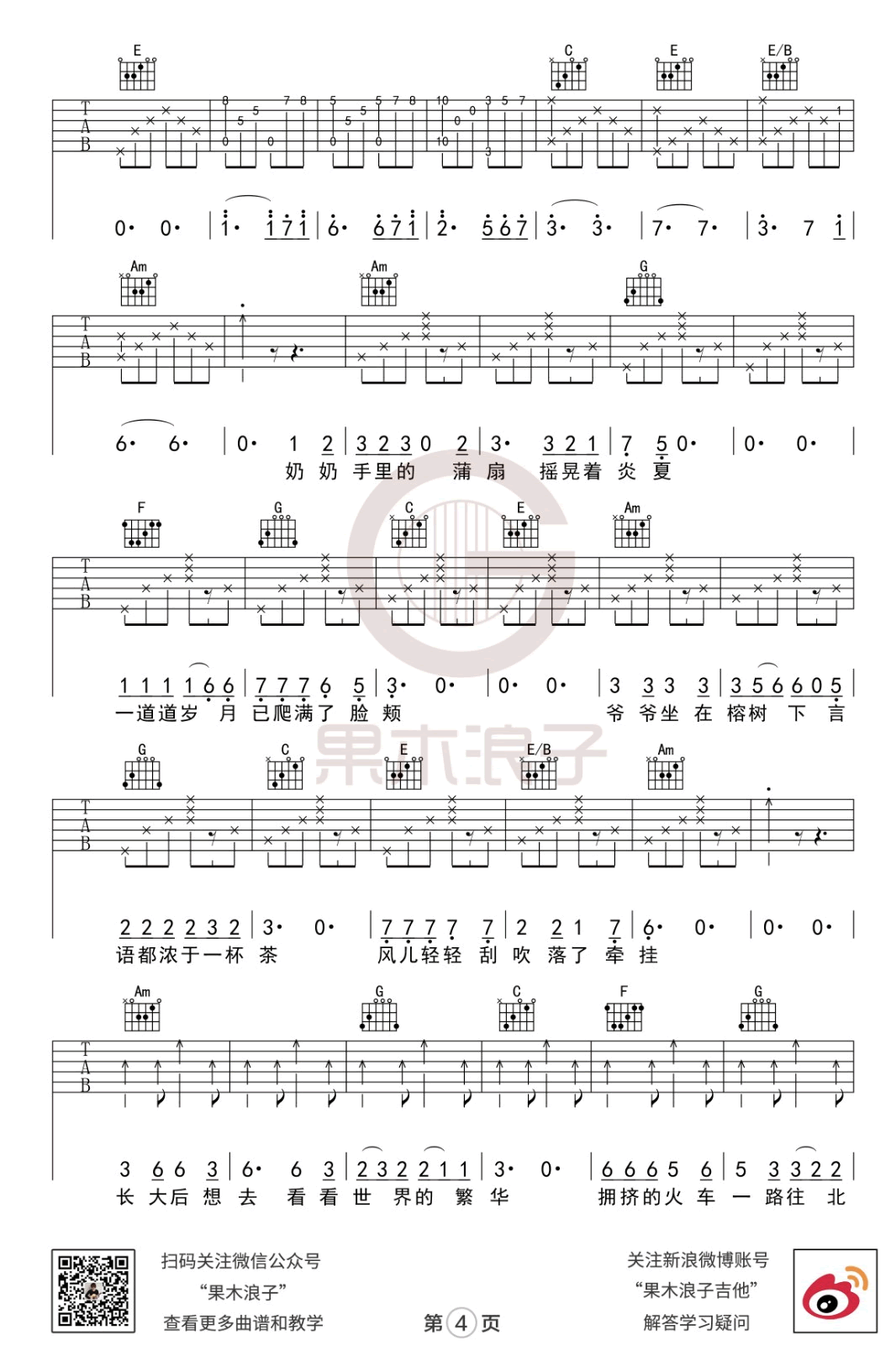 - 四块五吉他谱_隔壁老樊_C调六线谱_高清图片谱