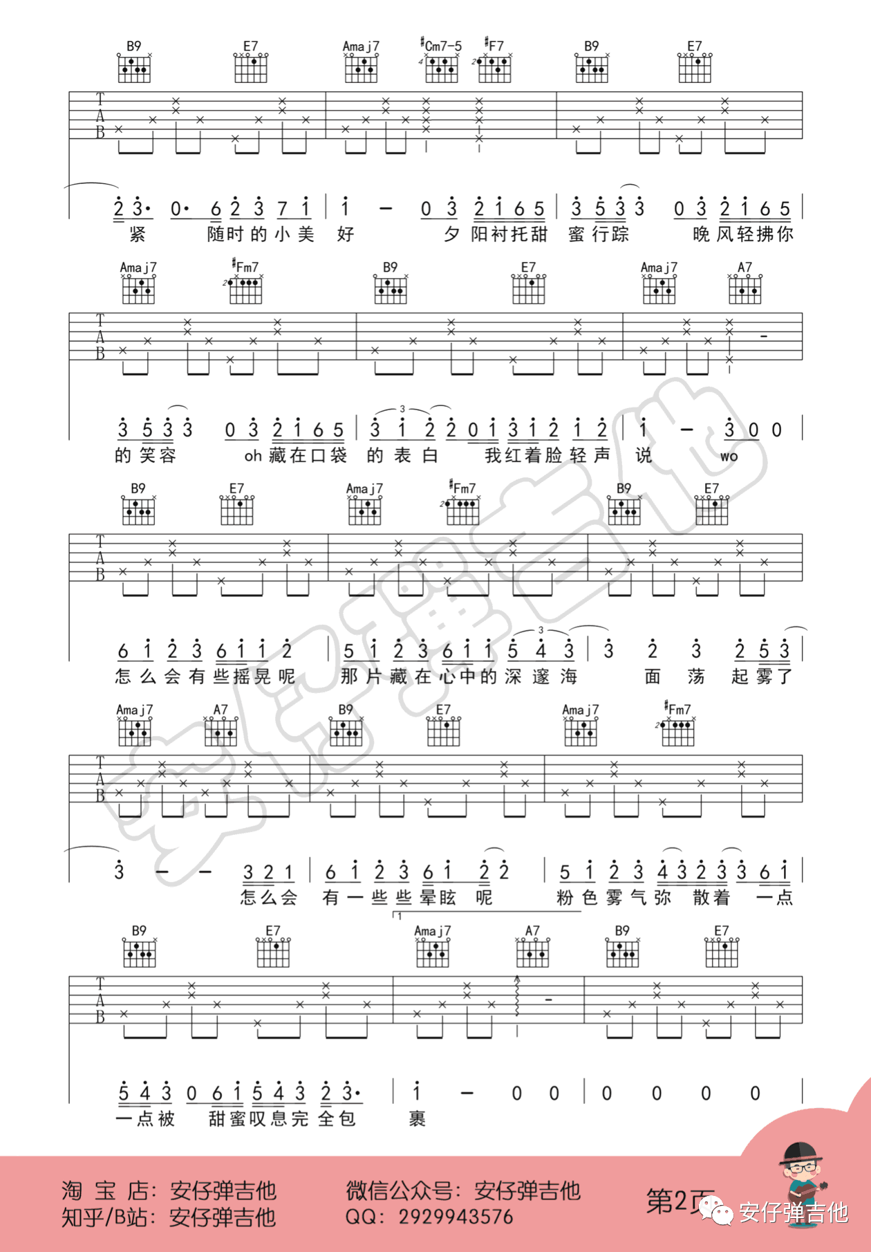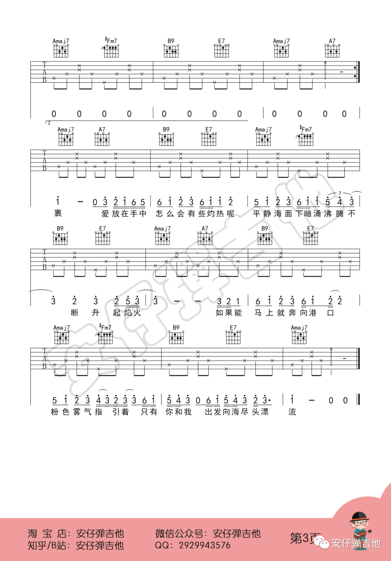- 粉雾海吉他谱_易烊千玺_A调指法_弹唱教学视频