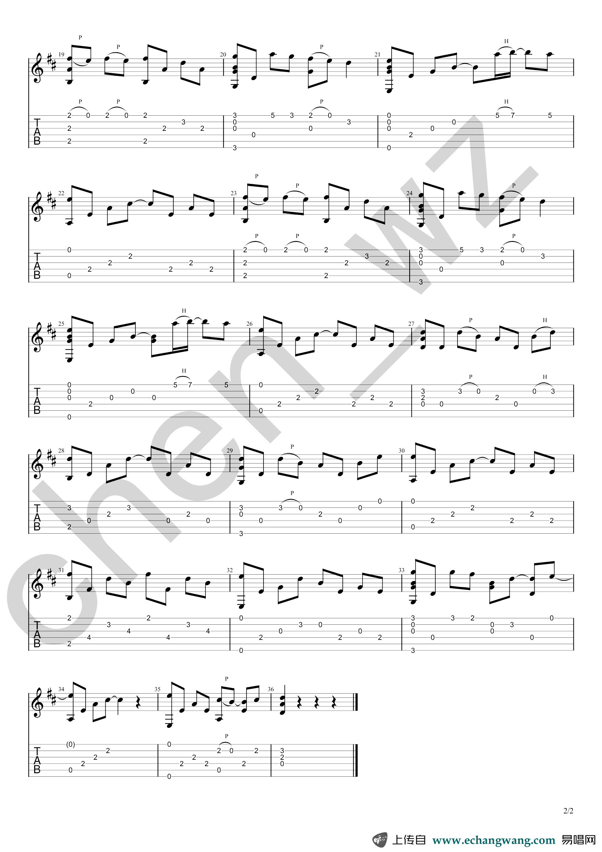 - D大调卡农指弹谱_吉他独奏谱_指弹吉他教学视频