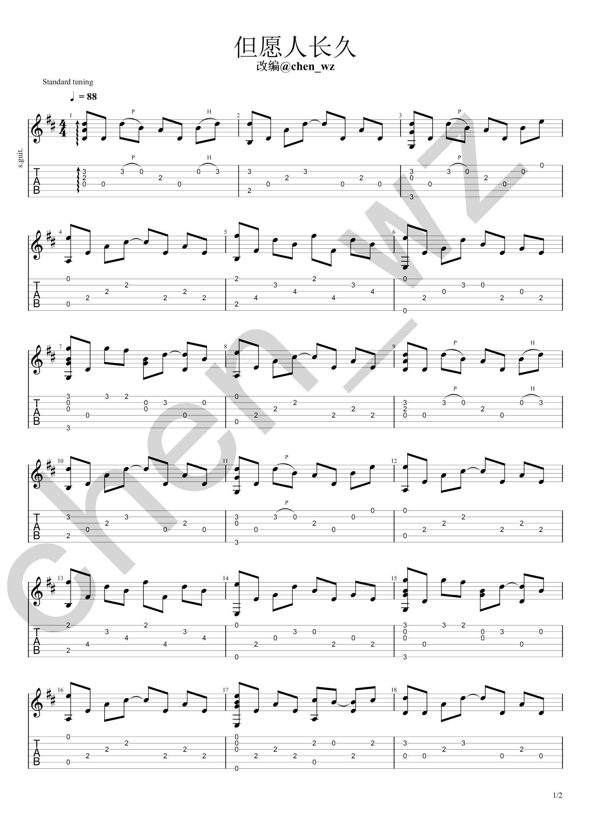- 但愿人长久指弹谱_邓丽君_吉他独奏谱_演示视频