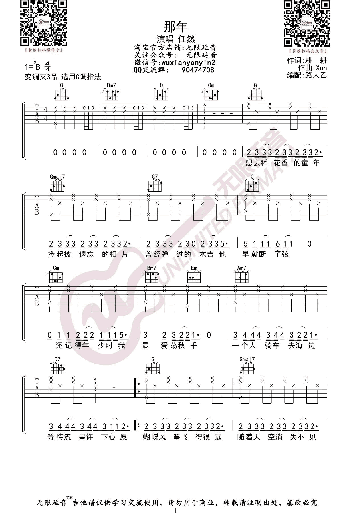- 任然《那年》吉他谱_G调弹唱谱_高清版