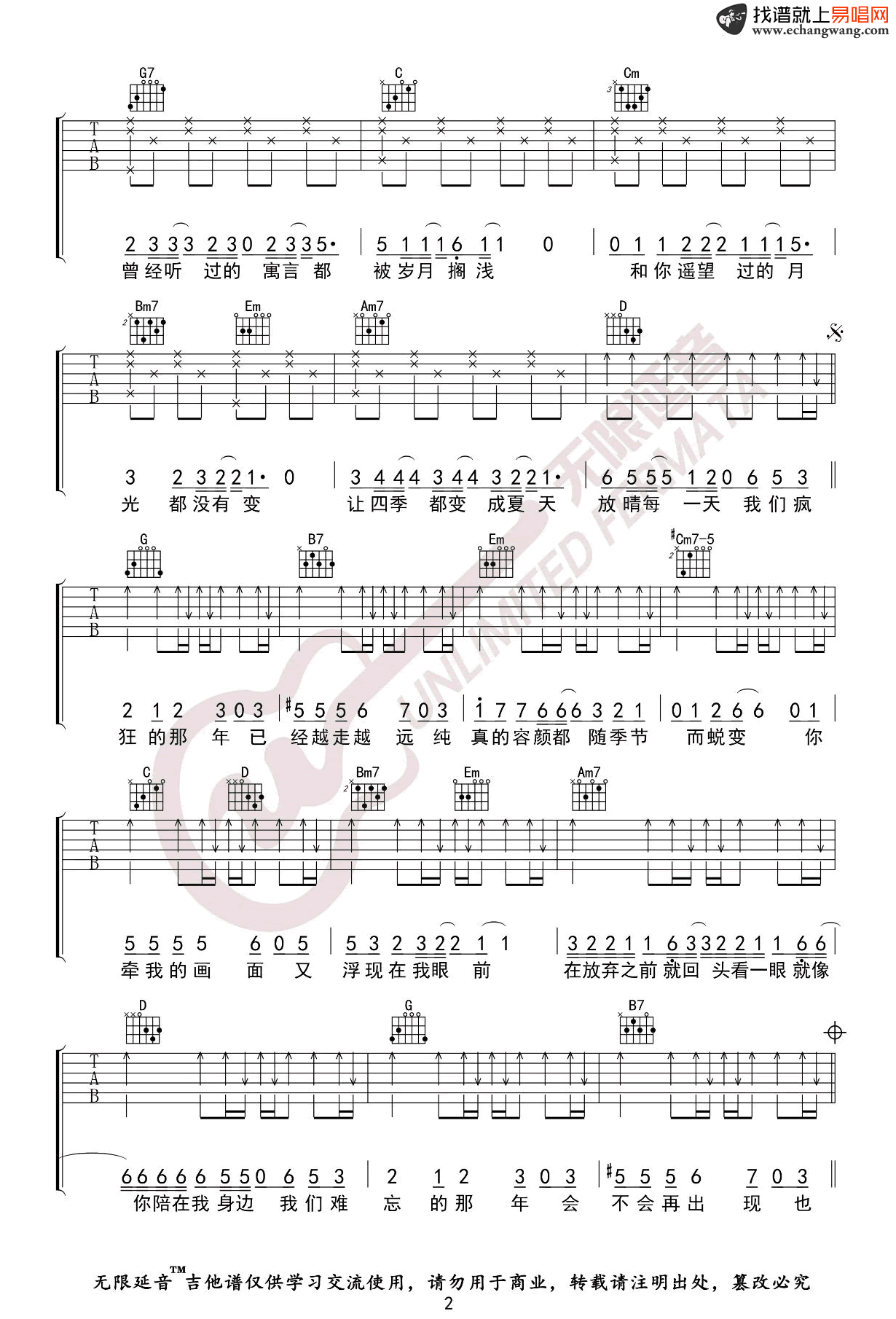- 年轮说吉他谱C调_杨丞琳_弹唱谱_高清版