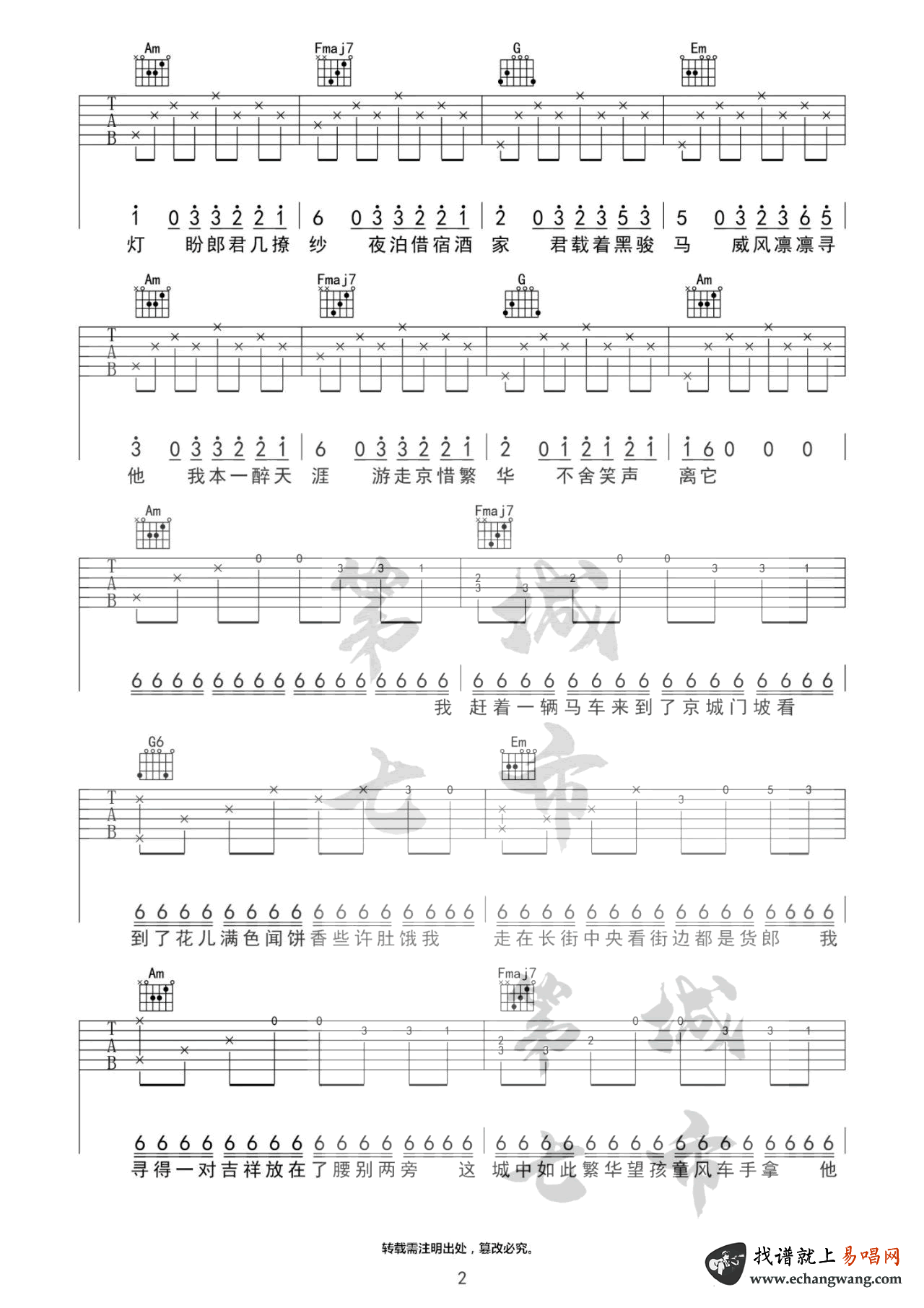 - 游京吉他谱_海伦_C调弹唱谱_《游京》六线谱