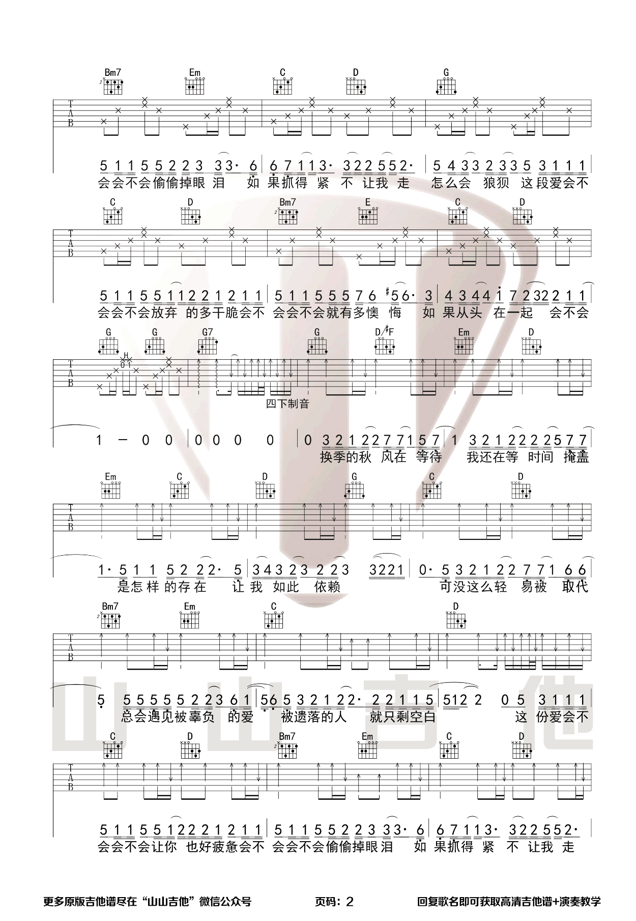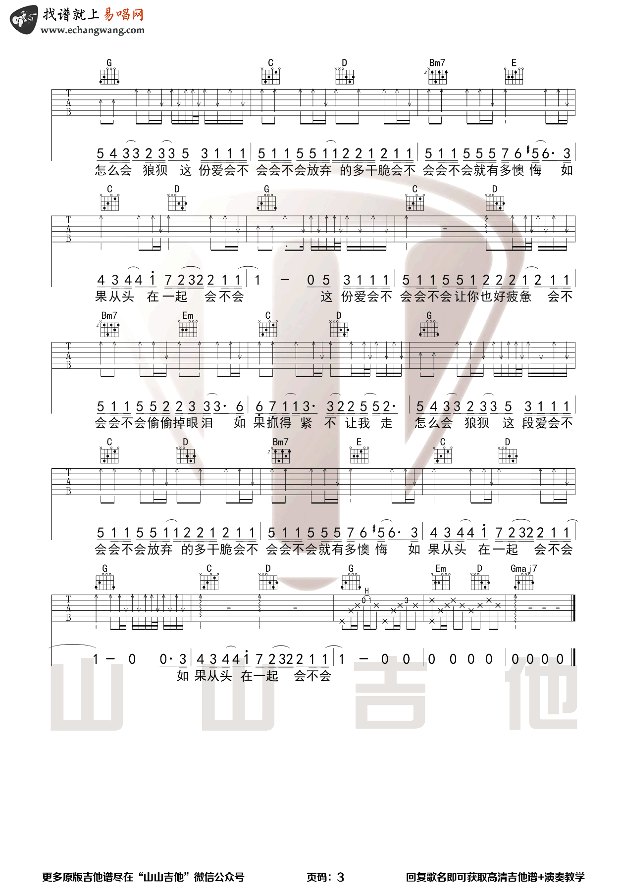 - 会不会吉他谱_刘大壮_G调_弹唱谱_原版六线谱