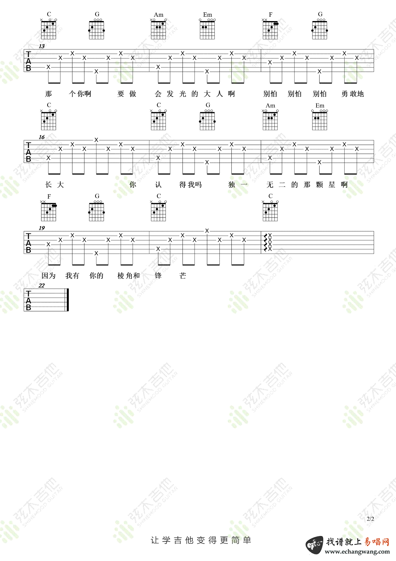 - 年轮说吉他谱C调_杨丞琳_弹唱谱_高清版