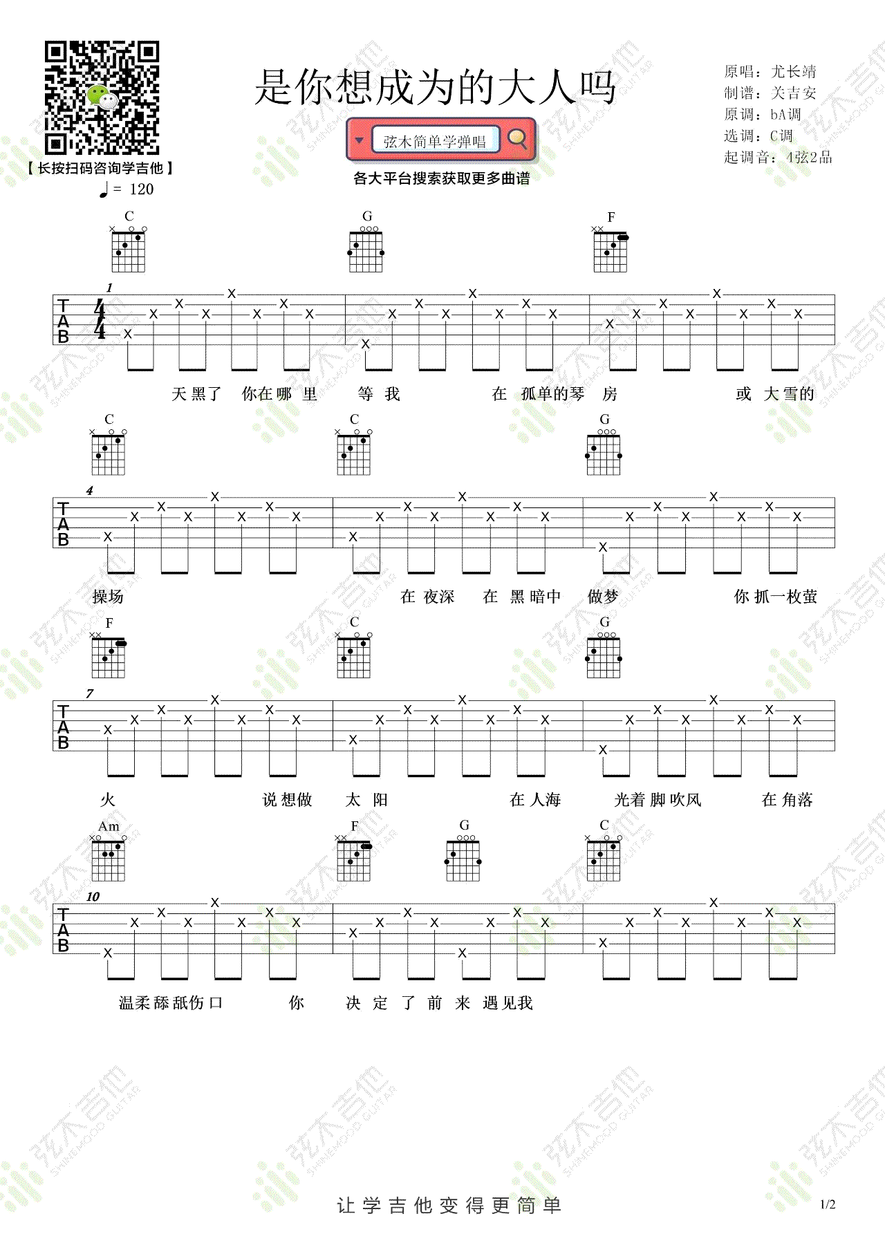 - 是你想成为的大人吗吉他谱_尤长靖_C调弹唱谱