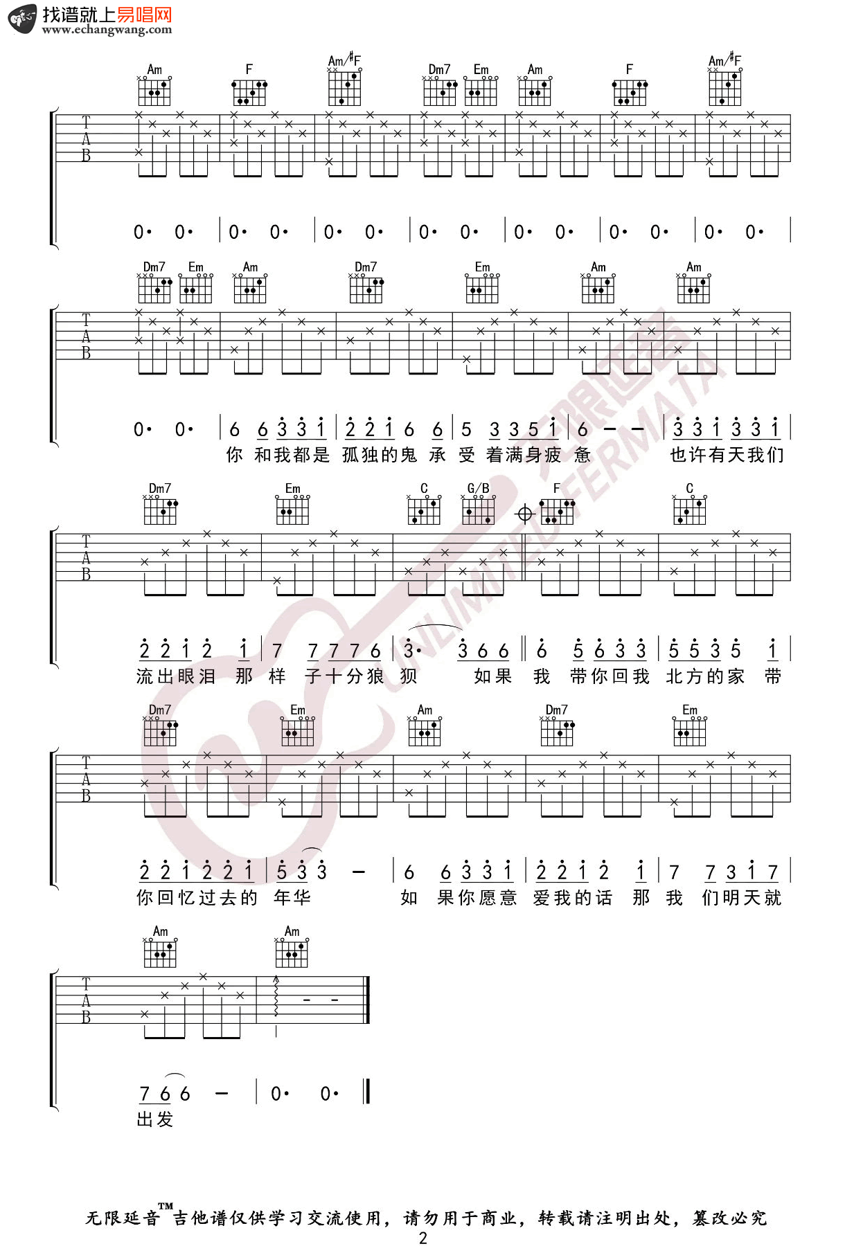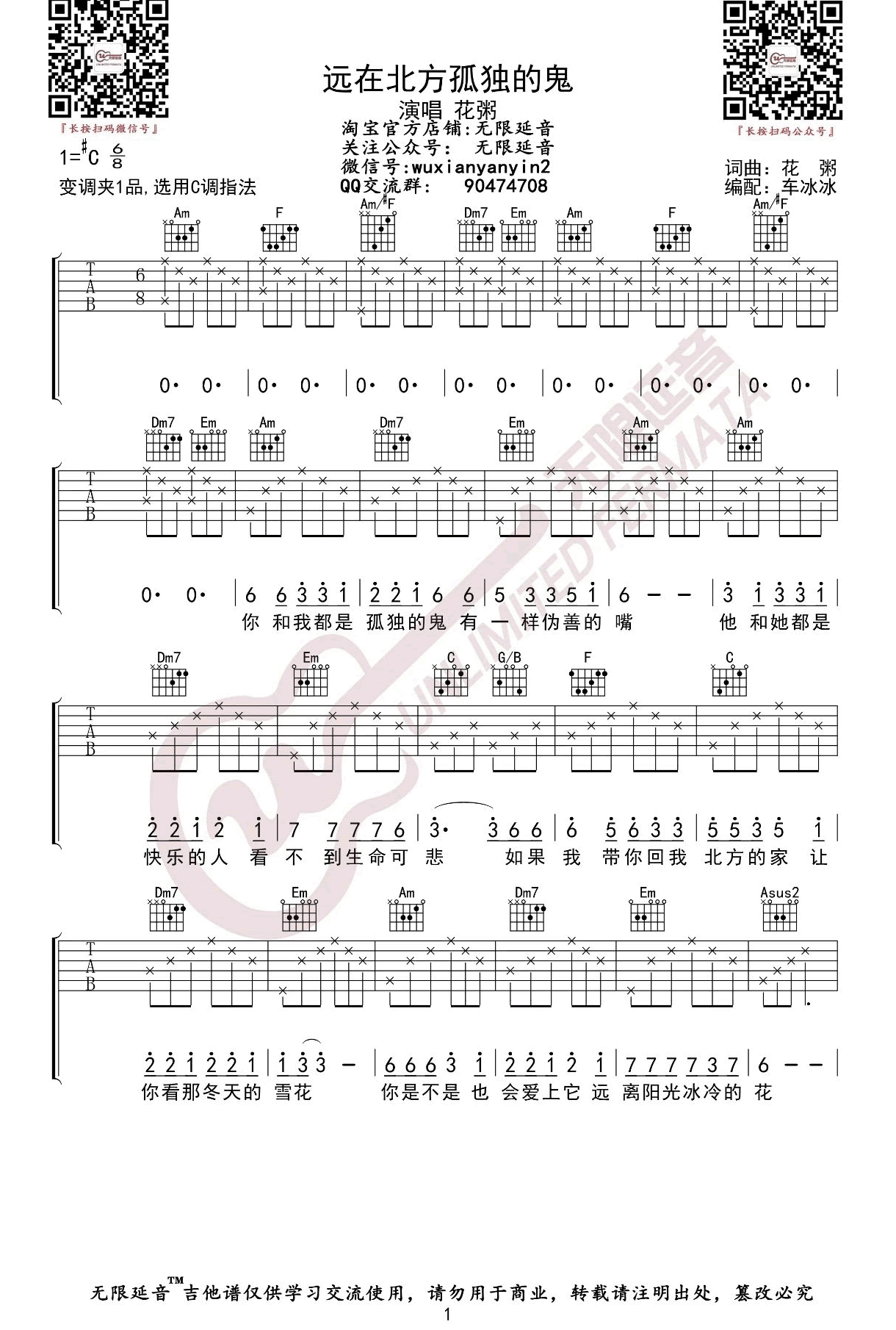 - 远在北方孤独的鬼吉他谱C调_花粥_民谣弹唱_六线谱