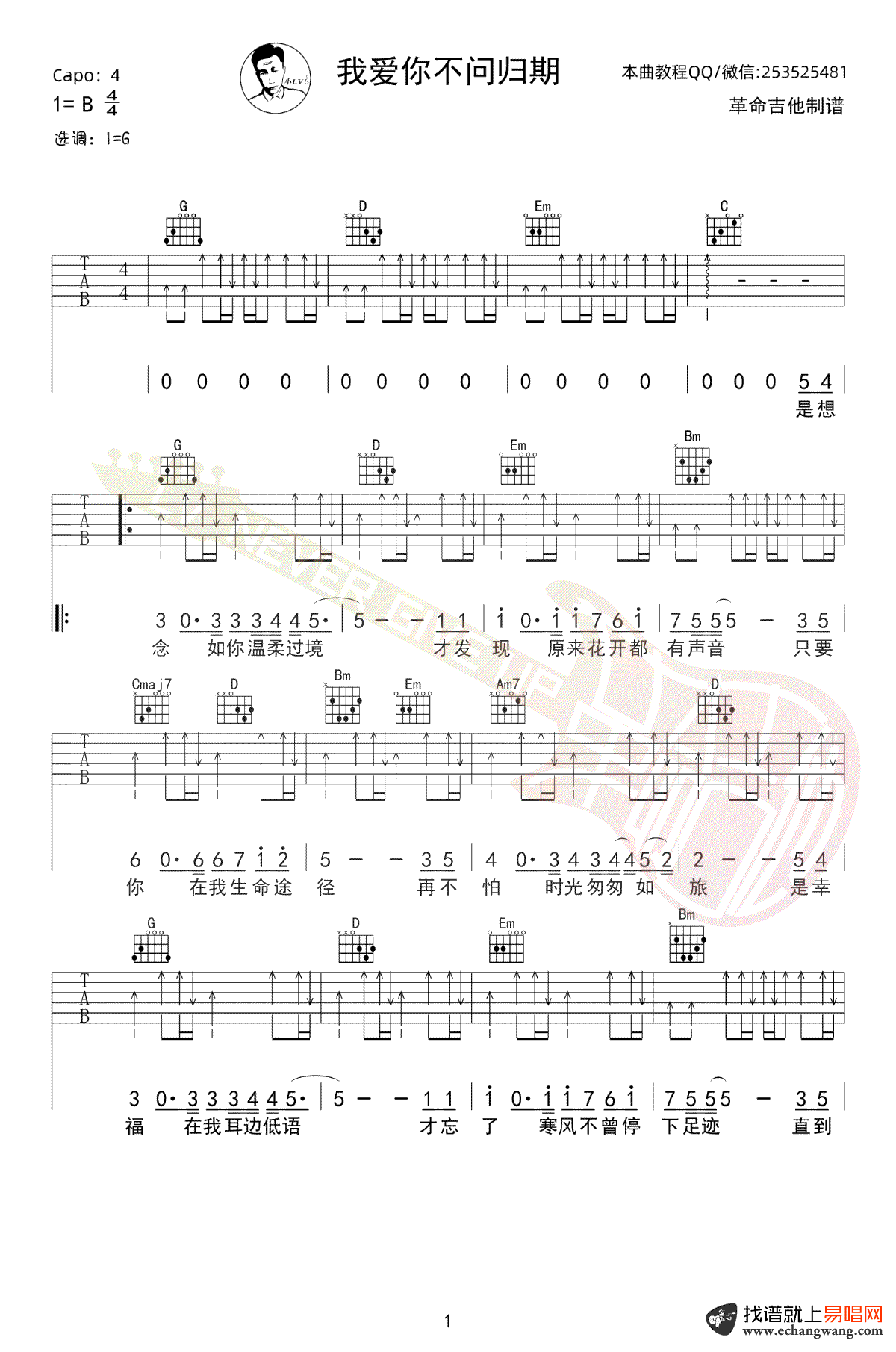 - 《我爱你不问归期》吉他谱_白小白_G调弹唱谱
