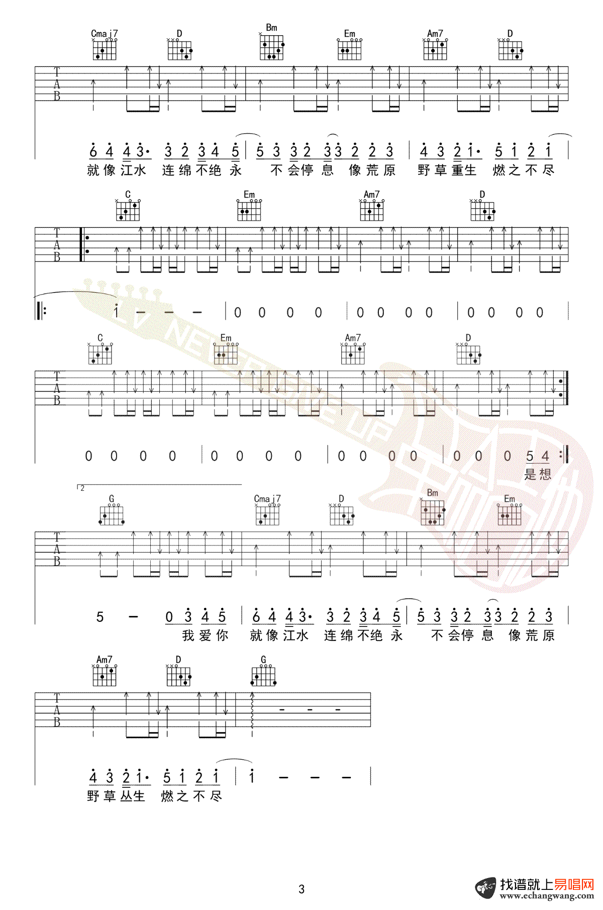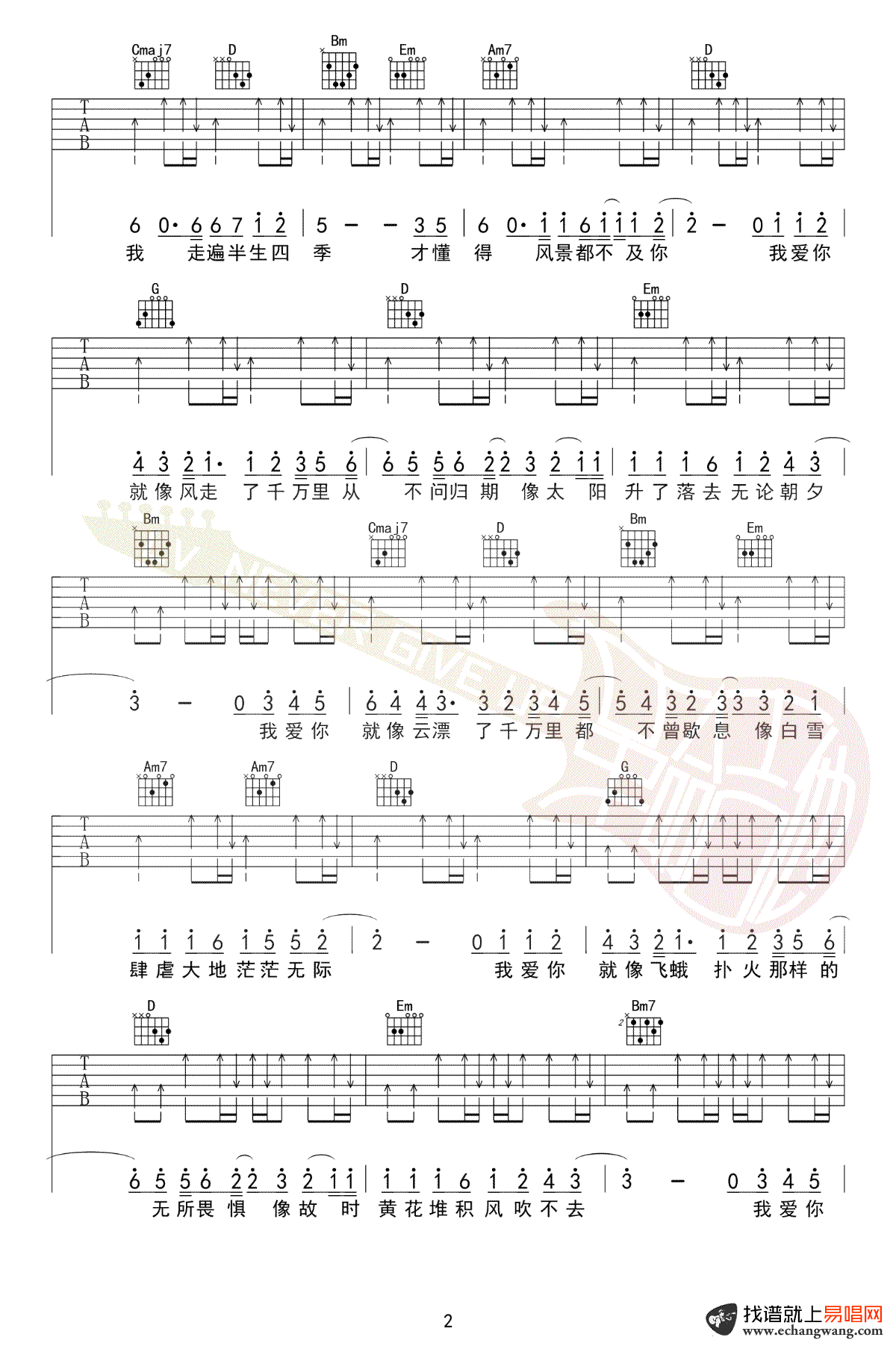 - 游山恋吉他谱_海伦_C调弹唱谱_图片谱
