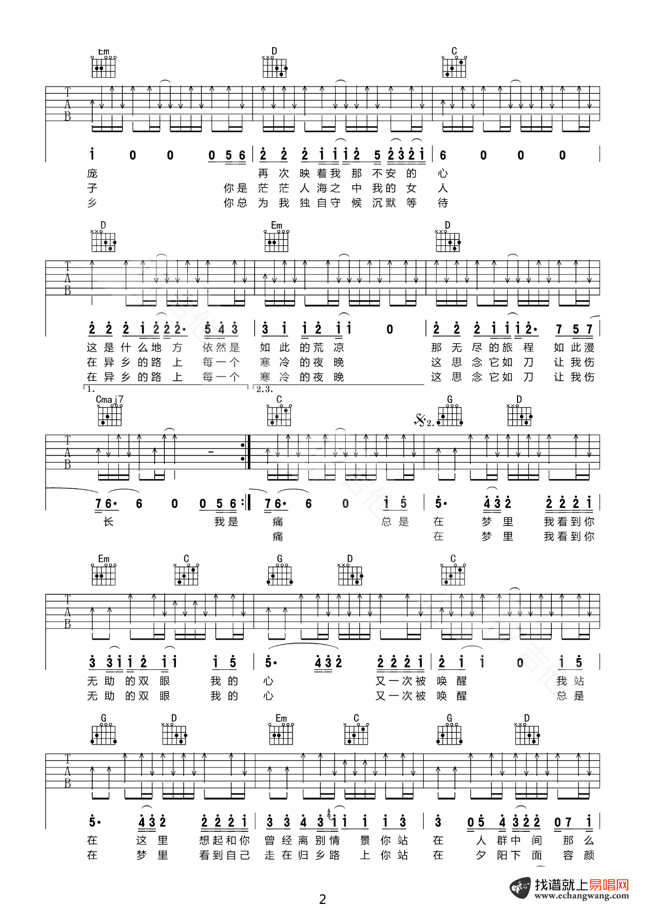 - 许巍《故乡》吉他谱_弹唱演示视频_高清图片谱