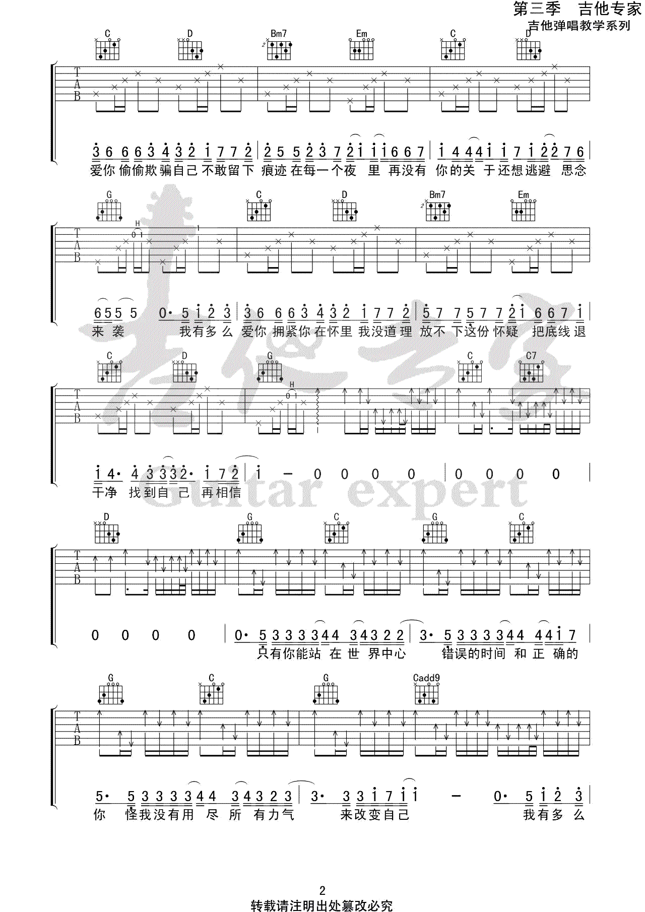- 不删吉他谱_井胧_C调弹唱谱_不删六线谱