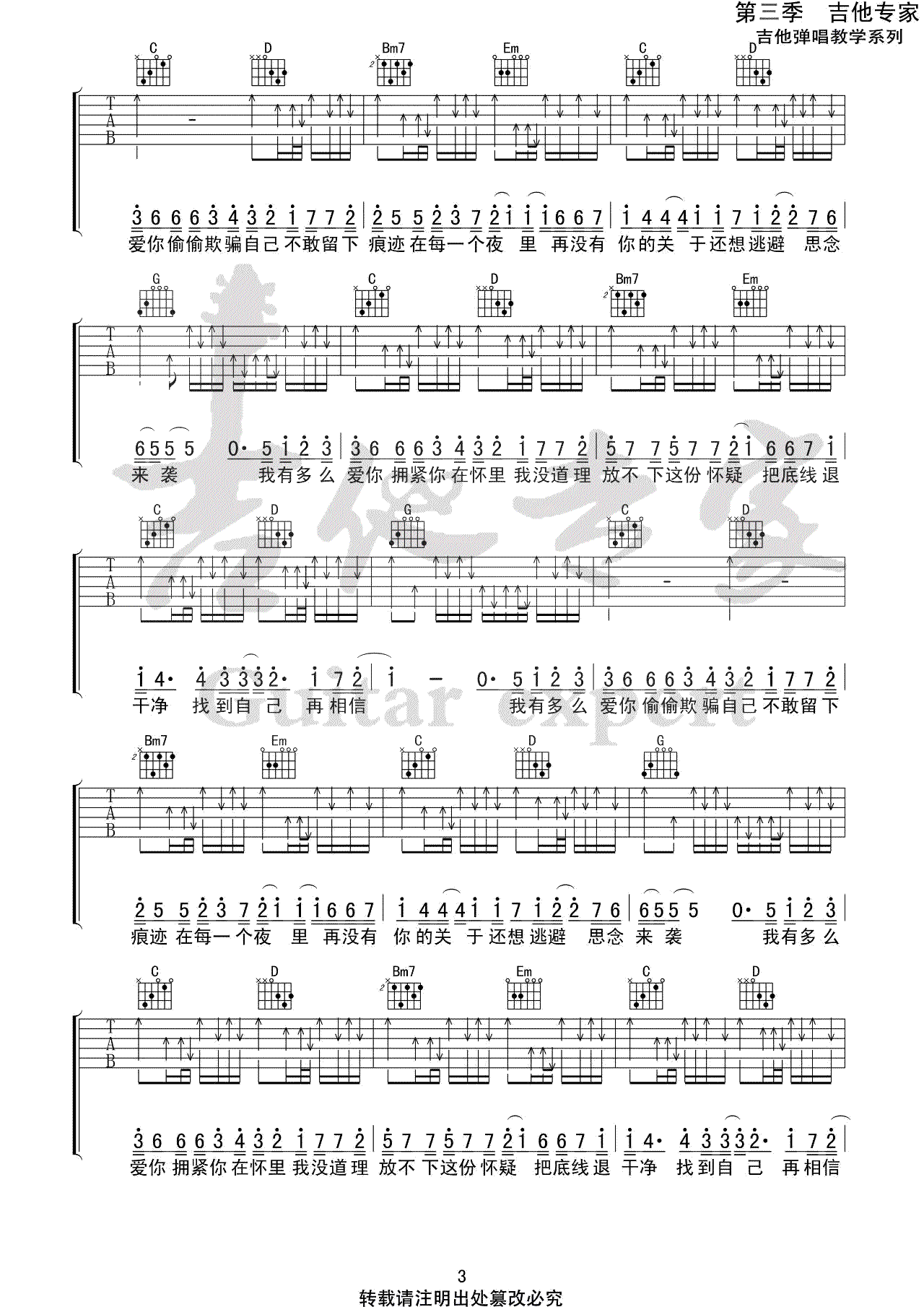 - 我有多么爱你吉他谱_刘大壮_G调_原版弹唱谱