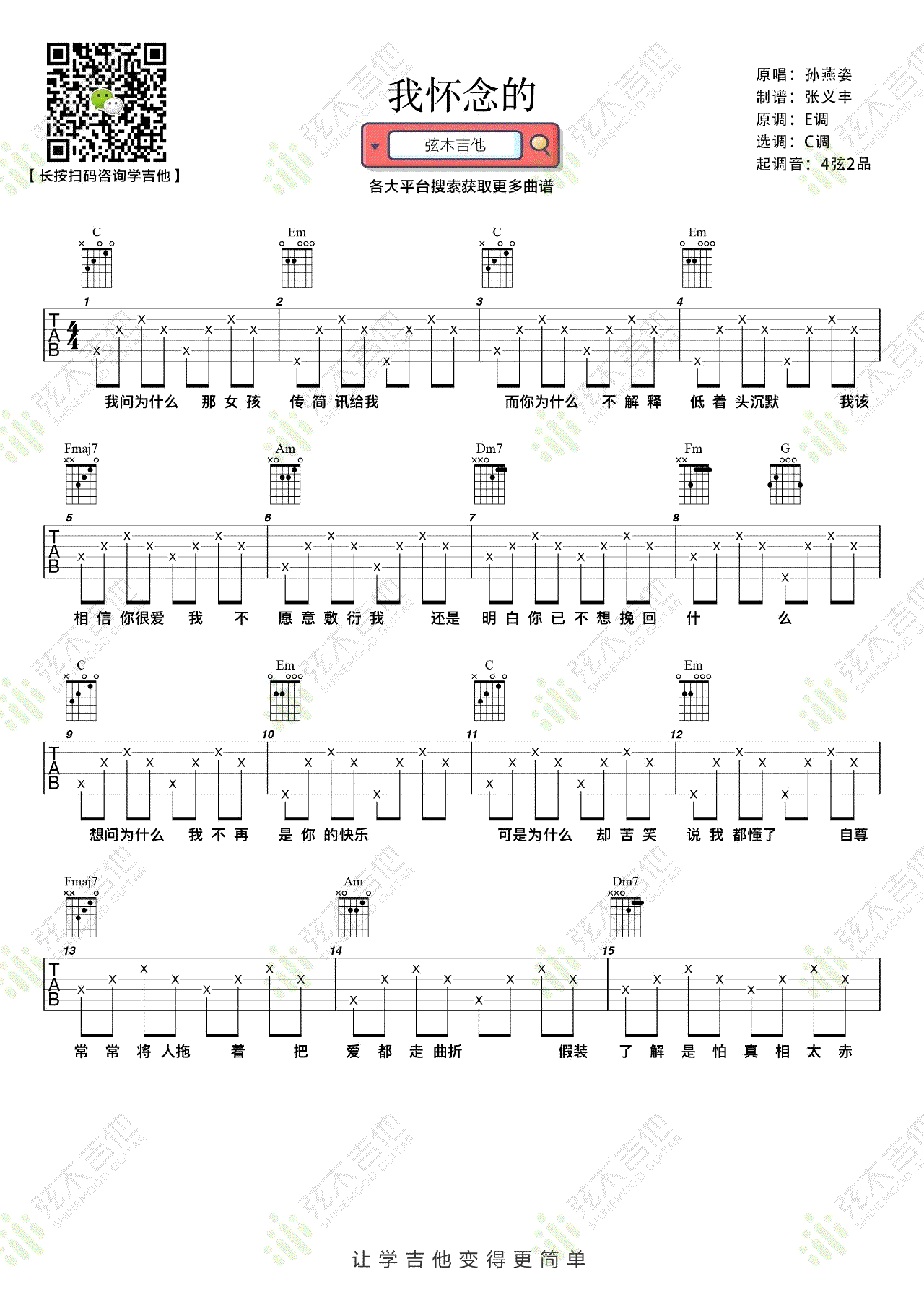 - 我怀念的吉他谱 孙燕姿 C调简单版 吉他教学视频