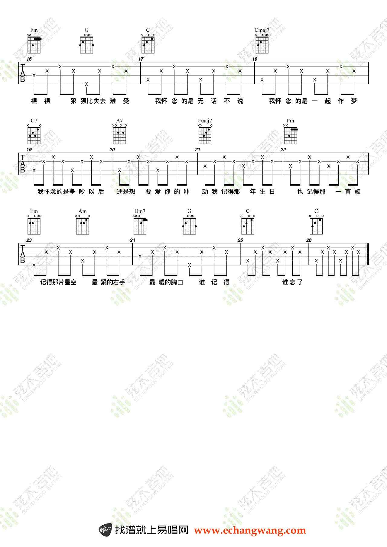 - 我怀念的吉他谱_孙燕姿_C调指法_简单弹唱谱