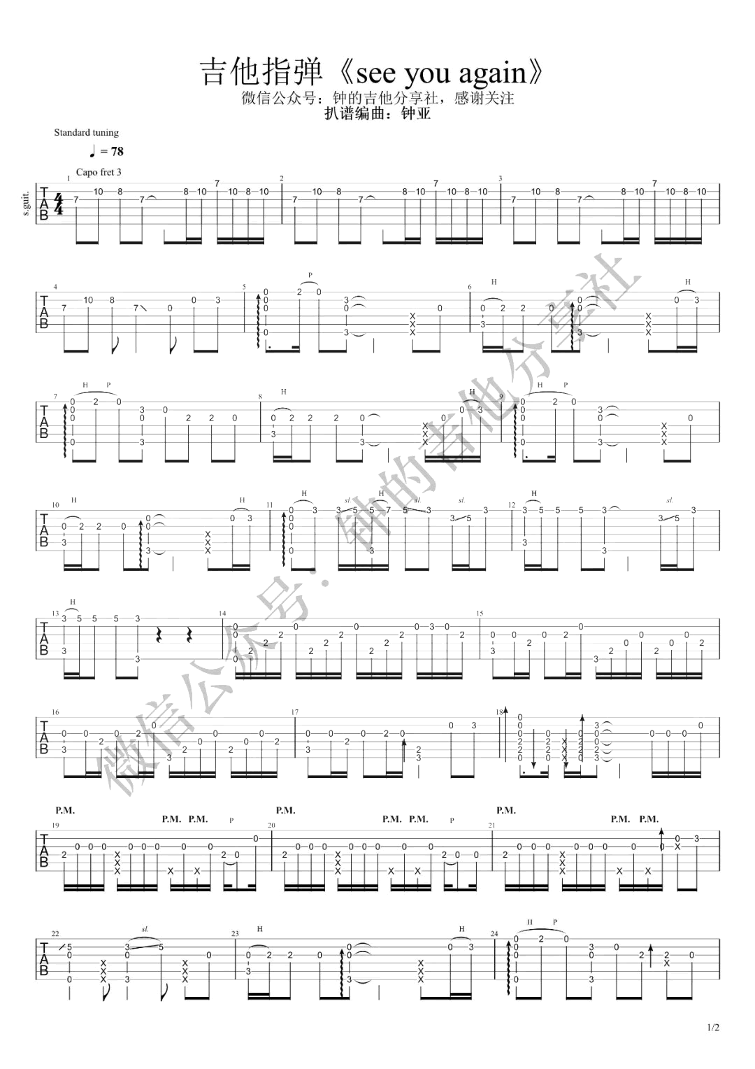 - See You Again指弹谱_吉他独奏谱_指弹教学视频