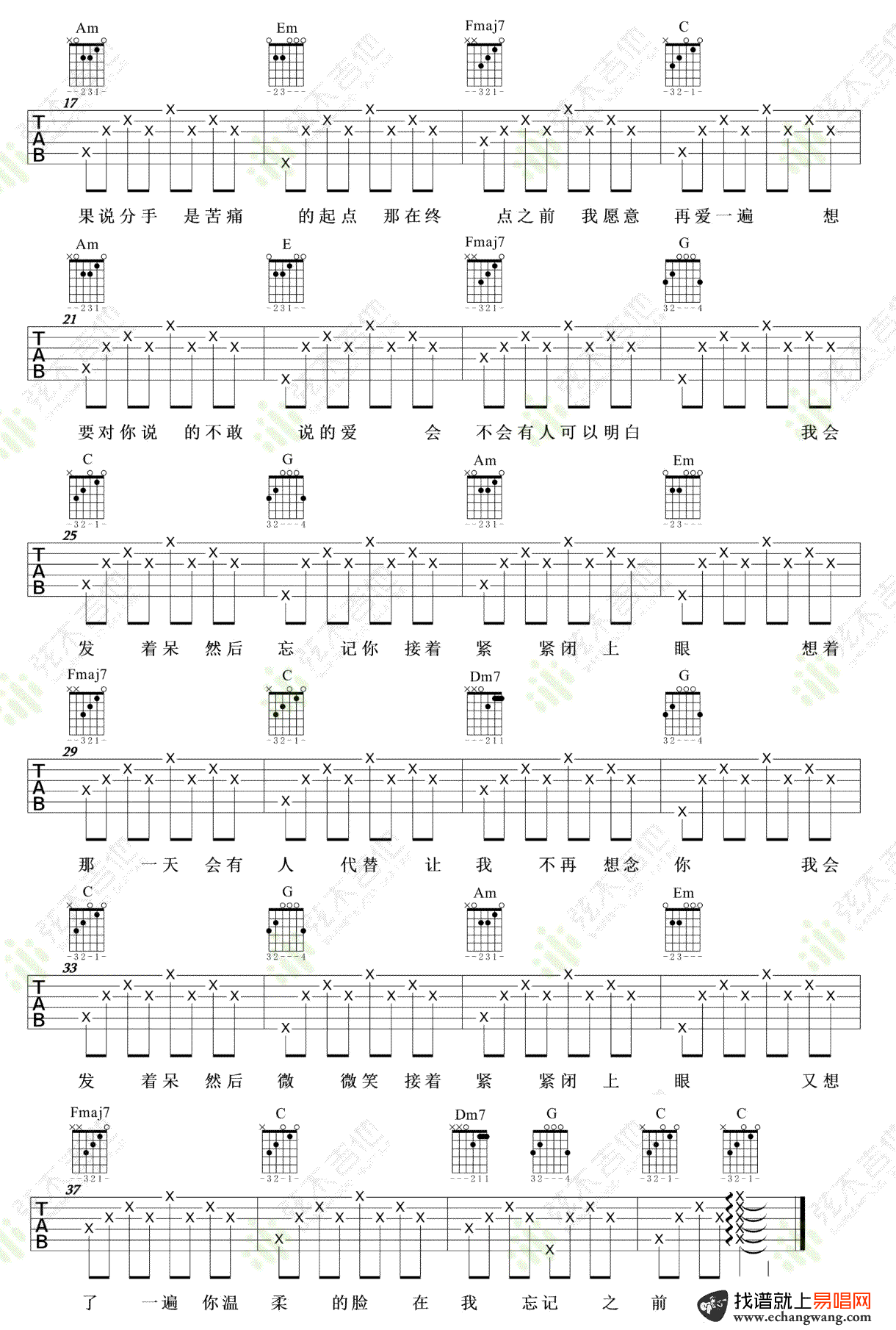 - 交换余生吉他谱_林俊杰_C调弹唱谱_新歌首发