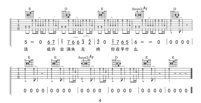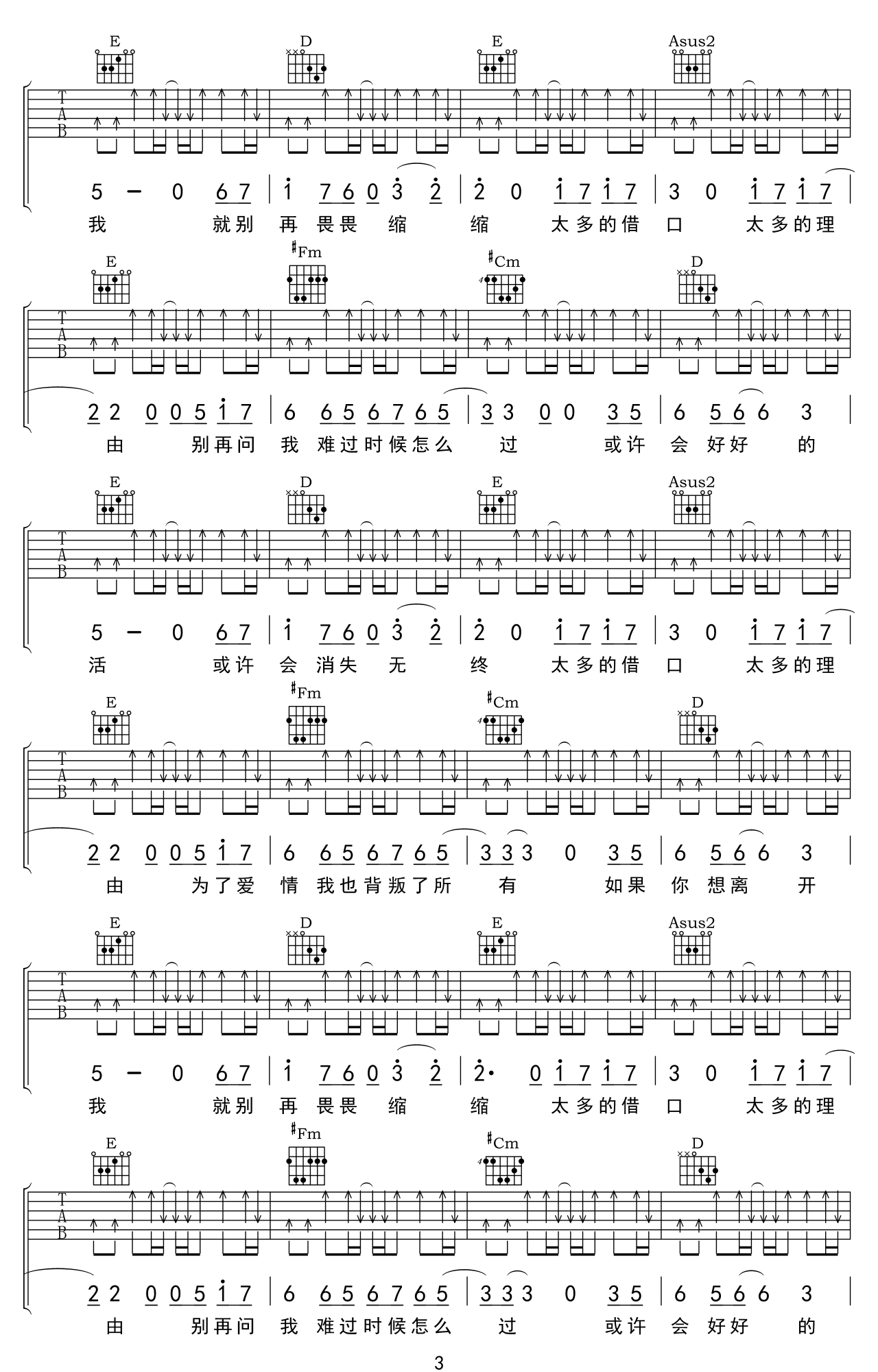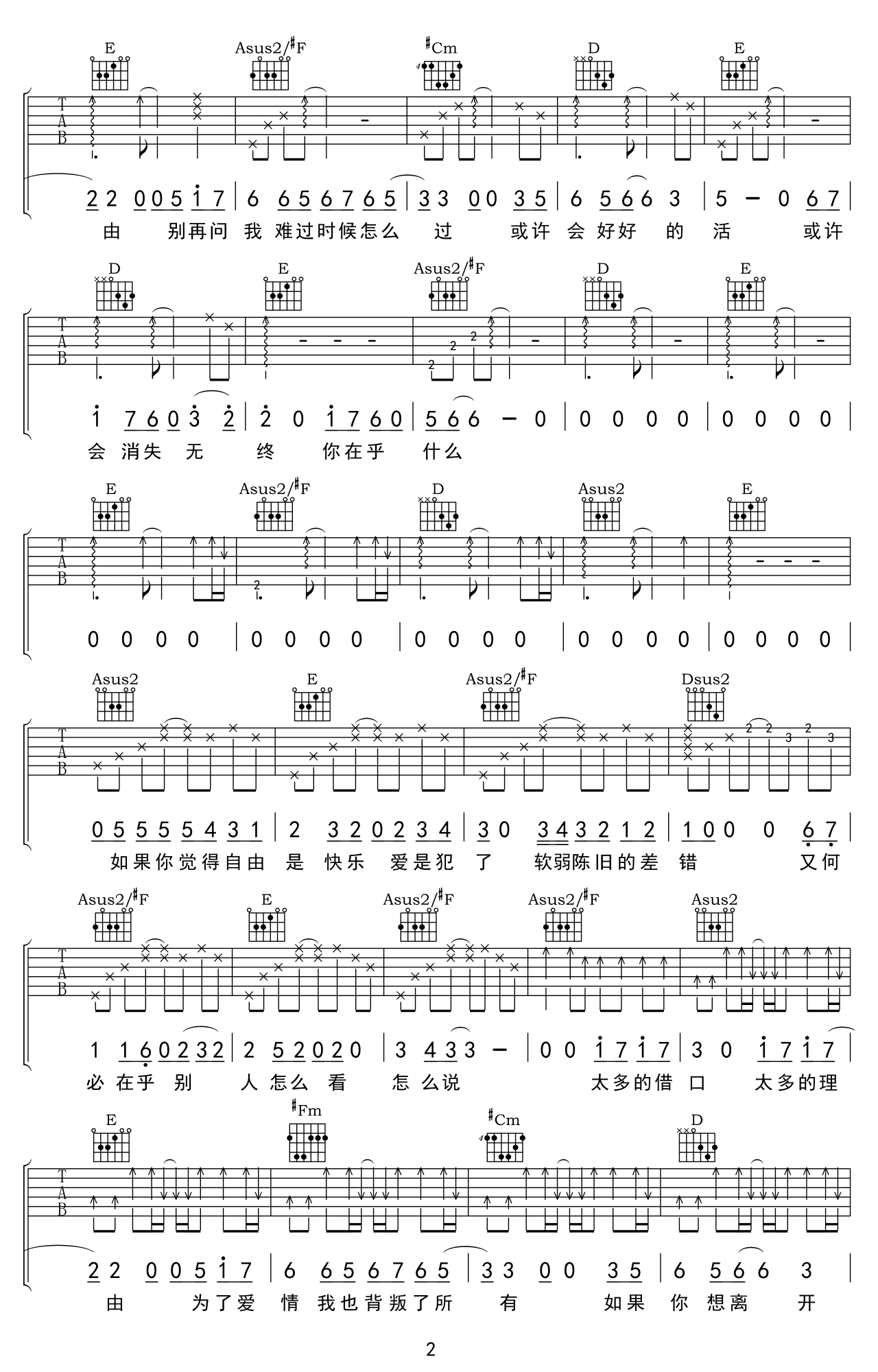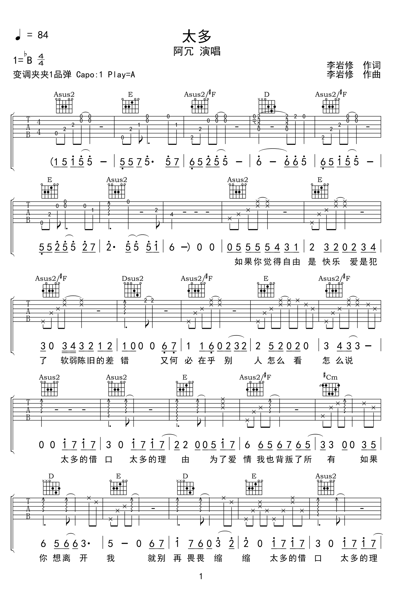 - 太多吉他谱_阿冗_A调弹唱谱_完整图片谱