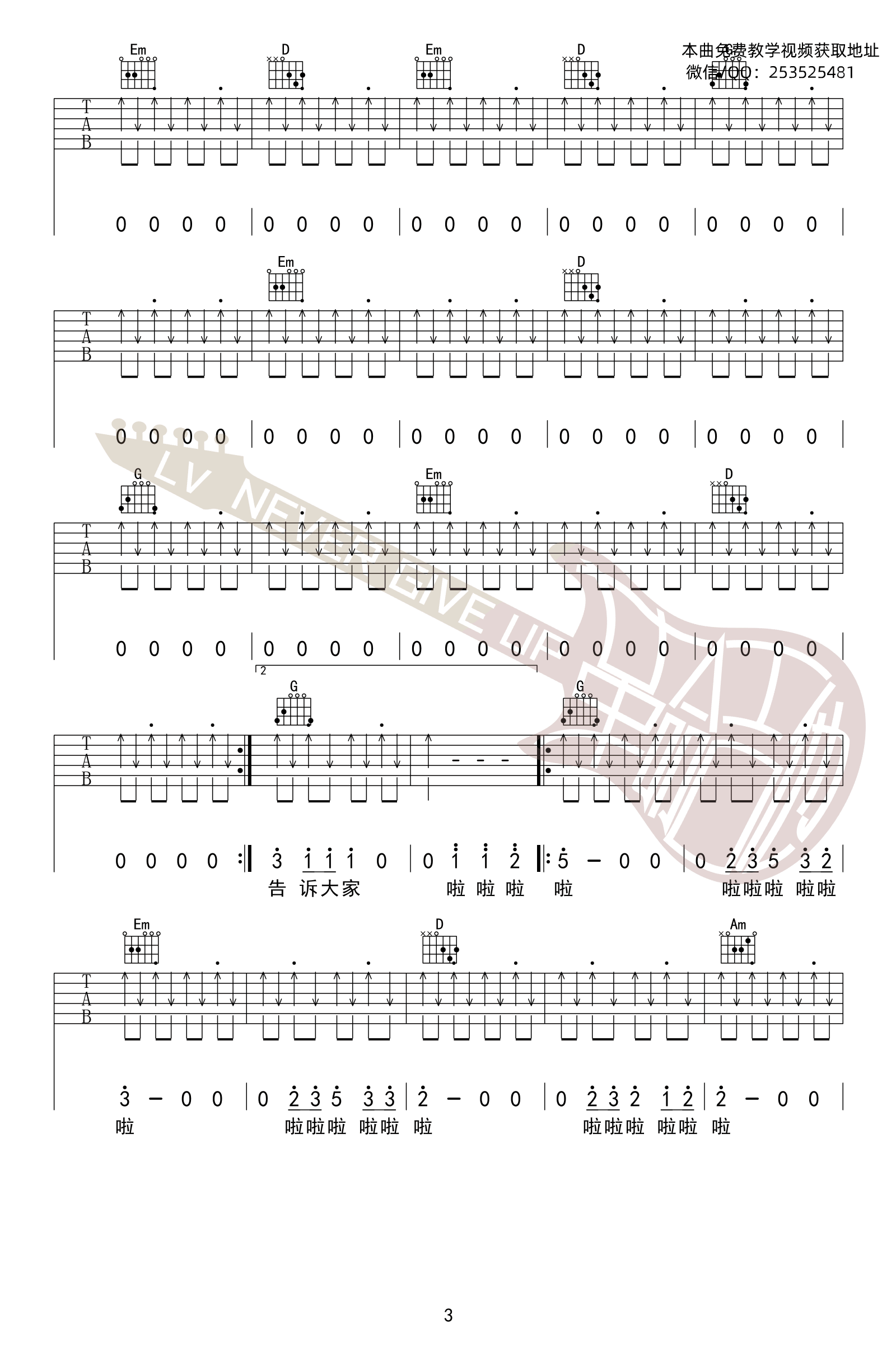 热门吉他谱(图片谱)