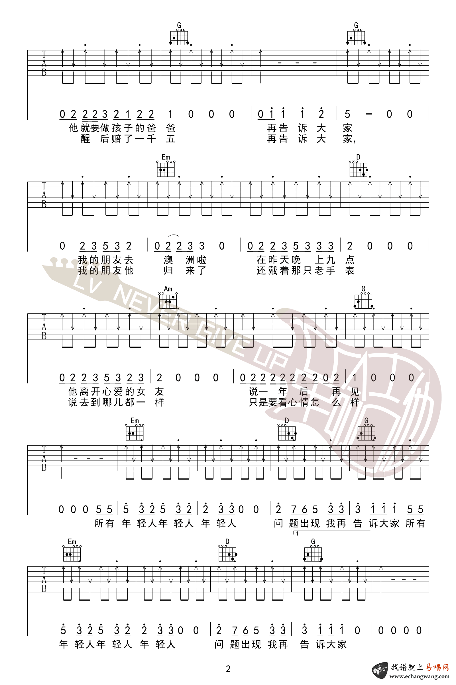- 男孩别哭吉他谱_欧阳娜娜_G调指法_原版吉他谱