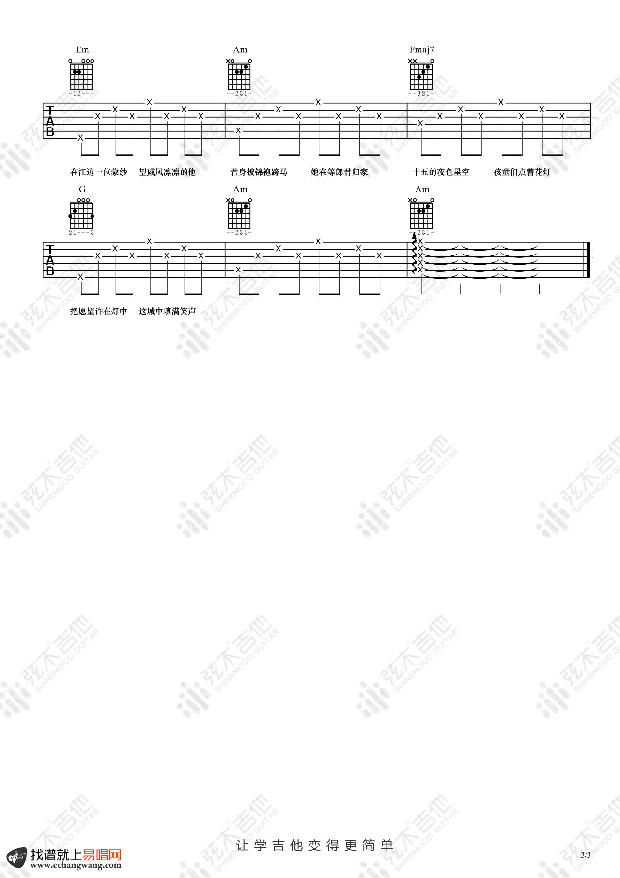 - 忘川的河吉他谱_魏佳艺_G调_弹唱六线谱